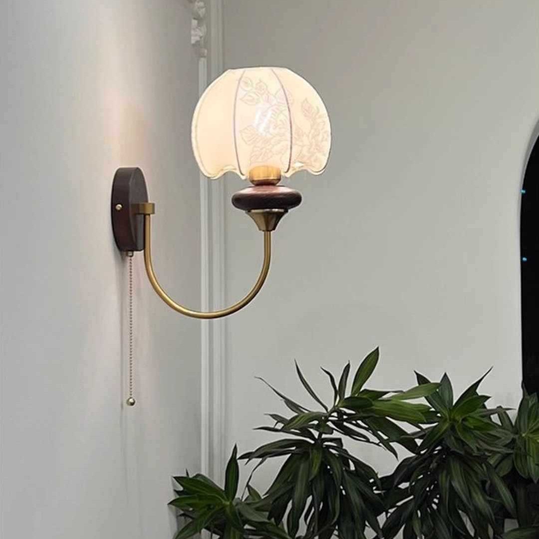 프랑스 중세 벽 램프 침실 머리맡 램프 미국 복고풍 패턴 패브릭 장식 배경 벽 스위치 램프