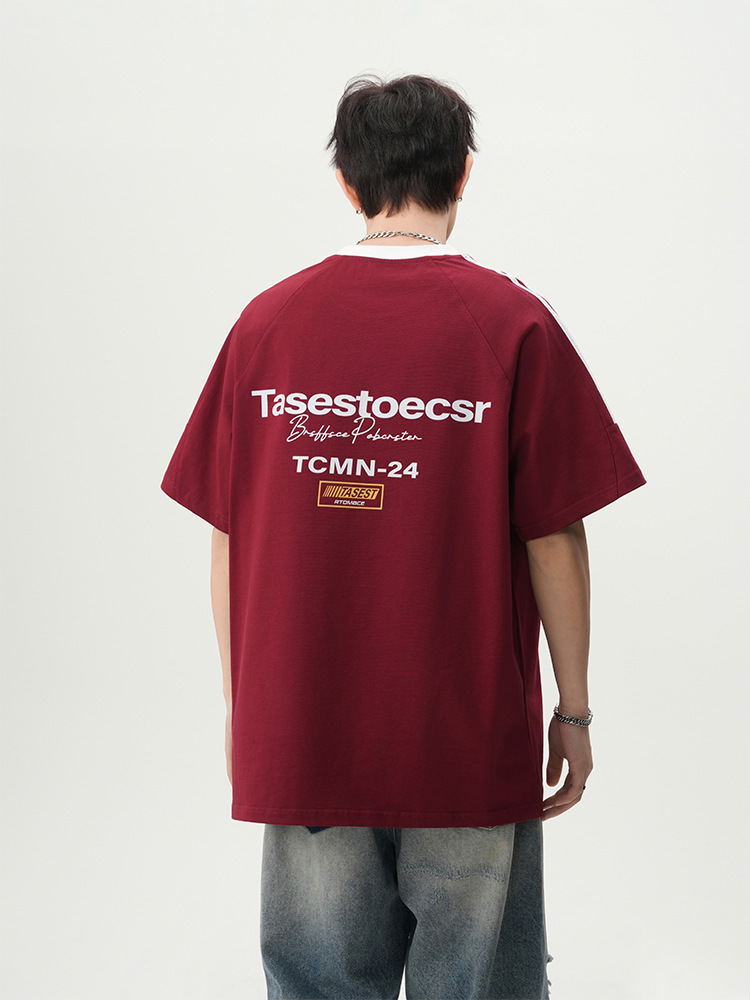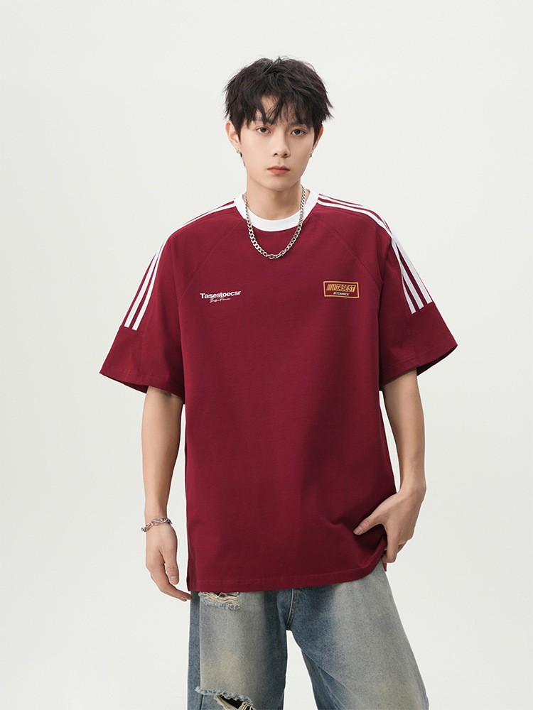 미국식 레트로 남성과 여성을위한 3 바 반팔 티셔츠 여름 트렌디 헤비급 퓨어 코튼 루즈 올 매치 커플 반소매 탑