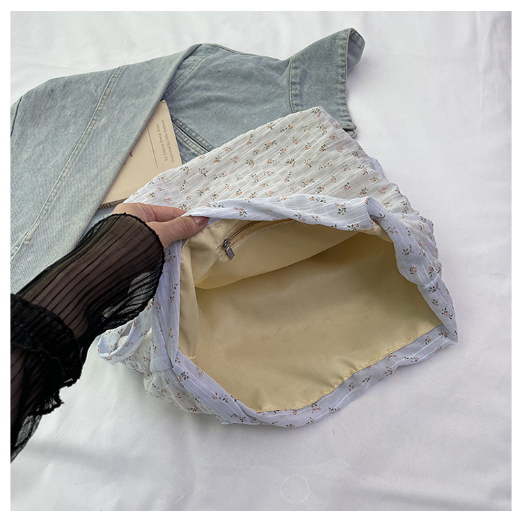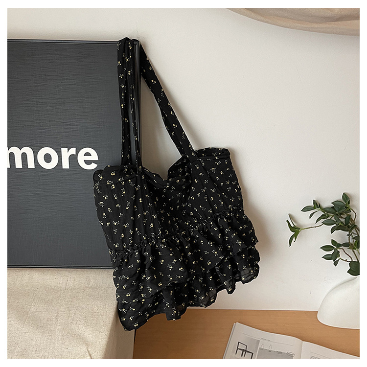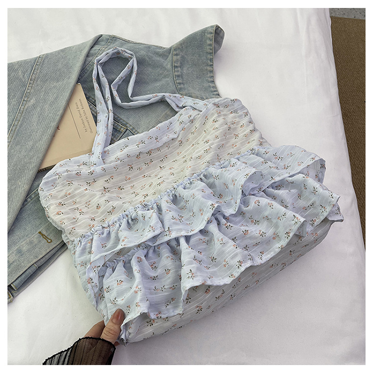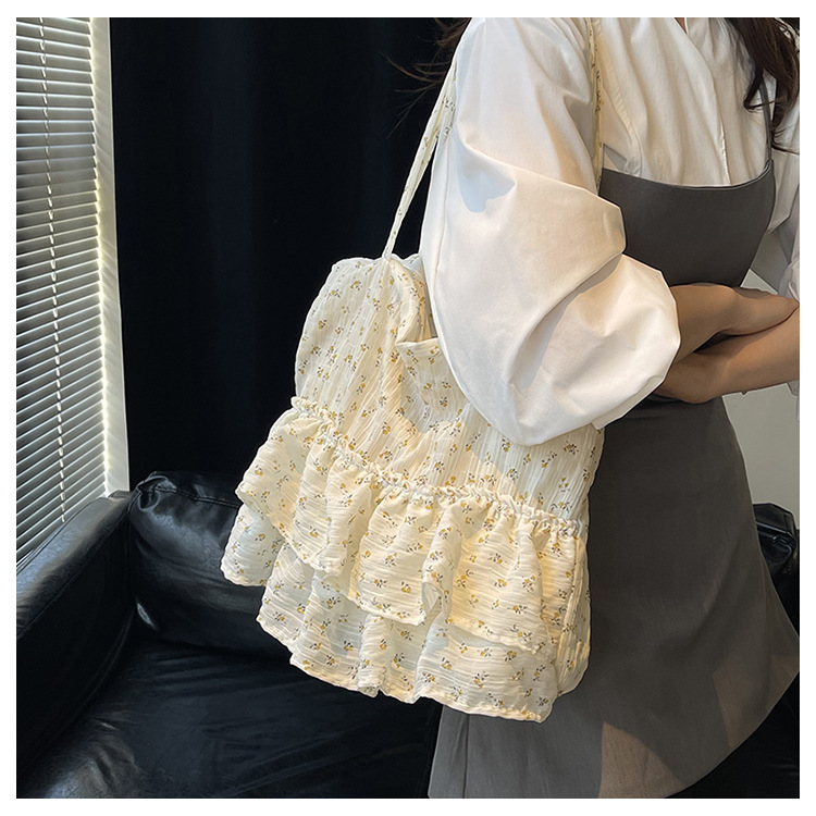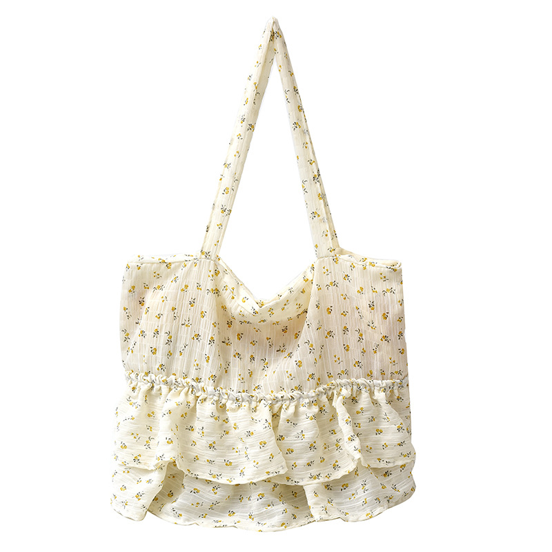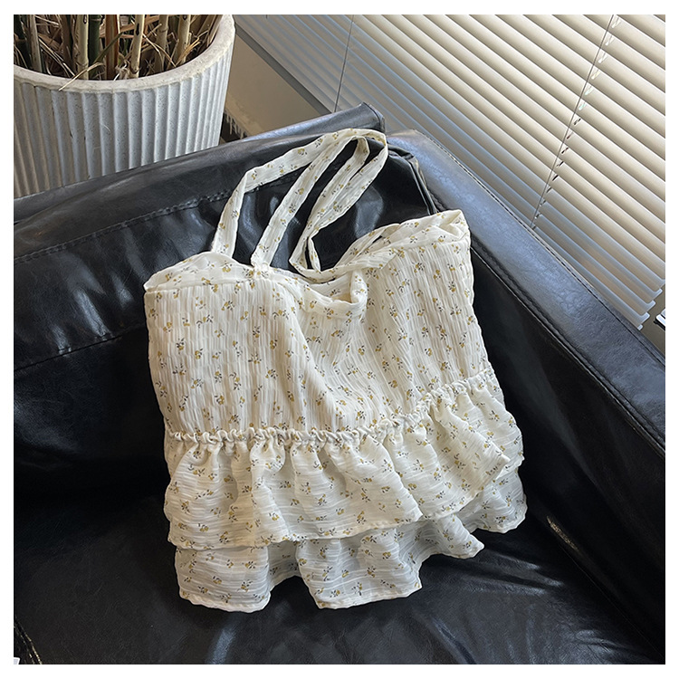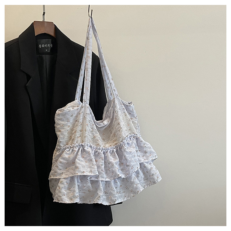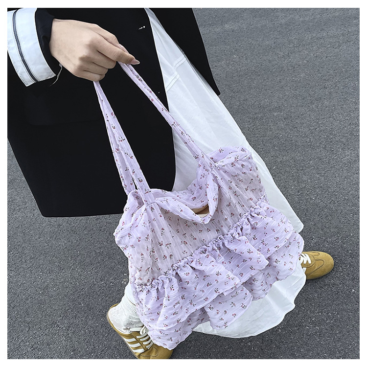 시폰 러플 꽃 헝겊 가방 여성 2025 새로운 요정 스타일 토트 백 부드러운 한국 스타일 대용량 어깨 가방스토어 가기