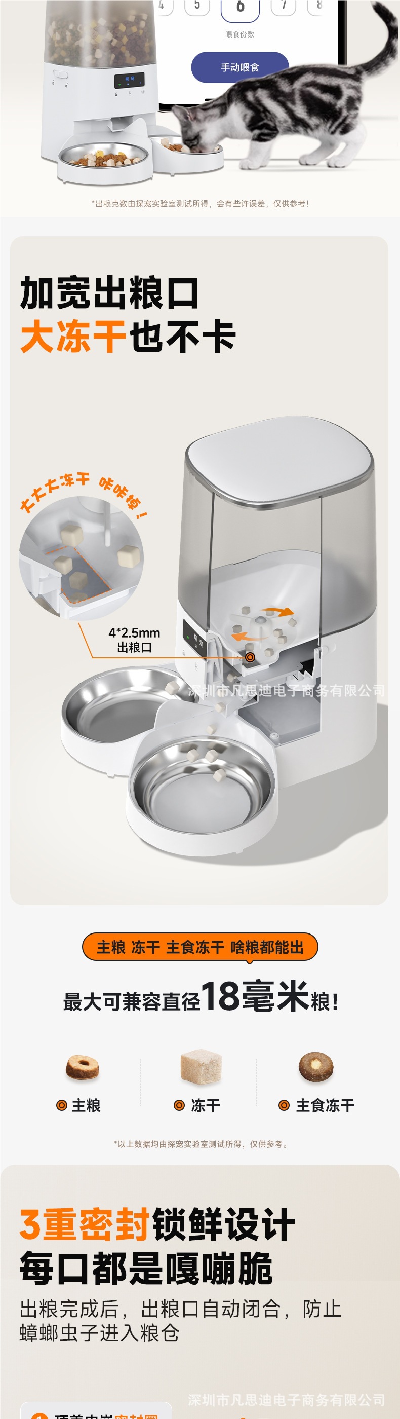 새로운 고양이 지능형 자동 급식기, 시간 및 정량 Wi-Fi 버전, 원격 제어, 동결 건조 단일 그릇 표준 포함