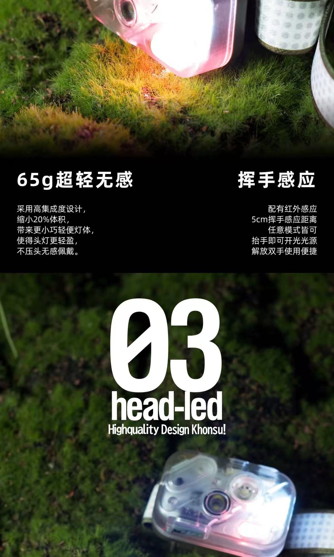 H03 헤드램프 초경량 비감각 강한 빛 슈퍼 밝은 충전식 헤드 장착형 야외 하이킹 등산 낚시 센서