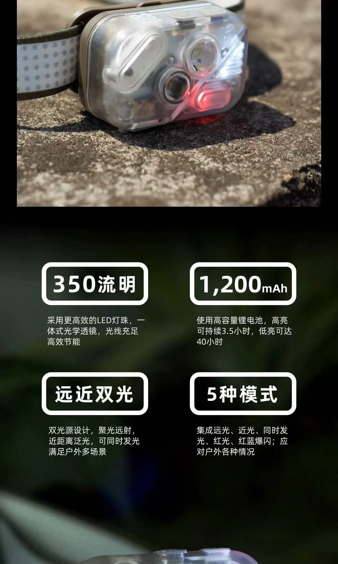 • Transparent-HO3 헤드라이트(라이트 + 헤드밴드 + 보관함)