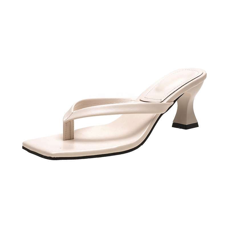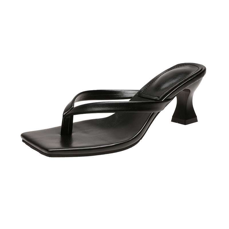 유럽과 미국의 2025 봄 여름 새로운 스타일 스퀘어 토 헤링본 샌들 여성 캐주얼 플립 플롭 키튼 힐 스틸레토 샌들