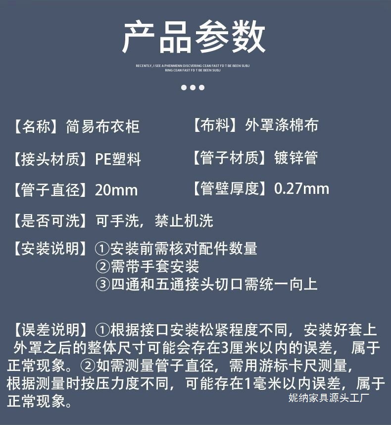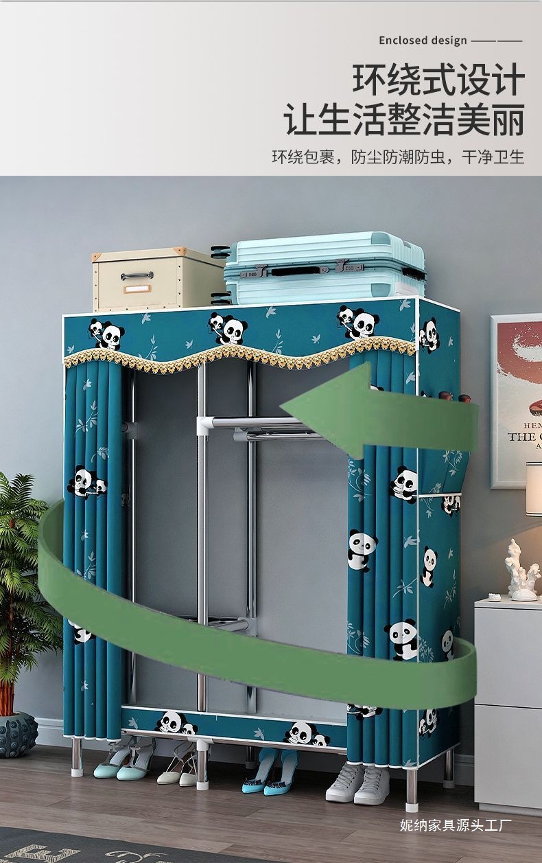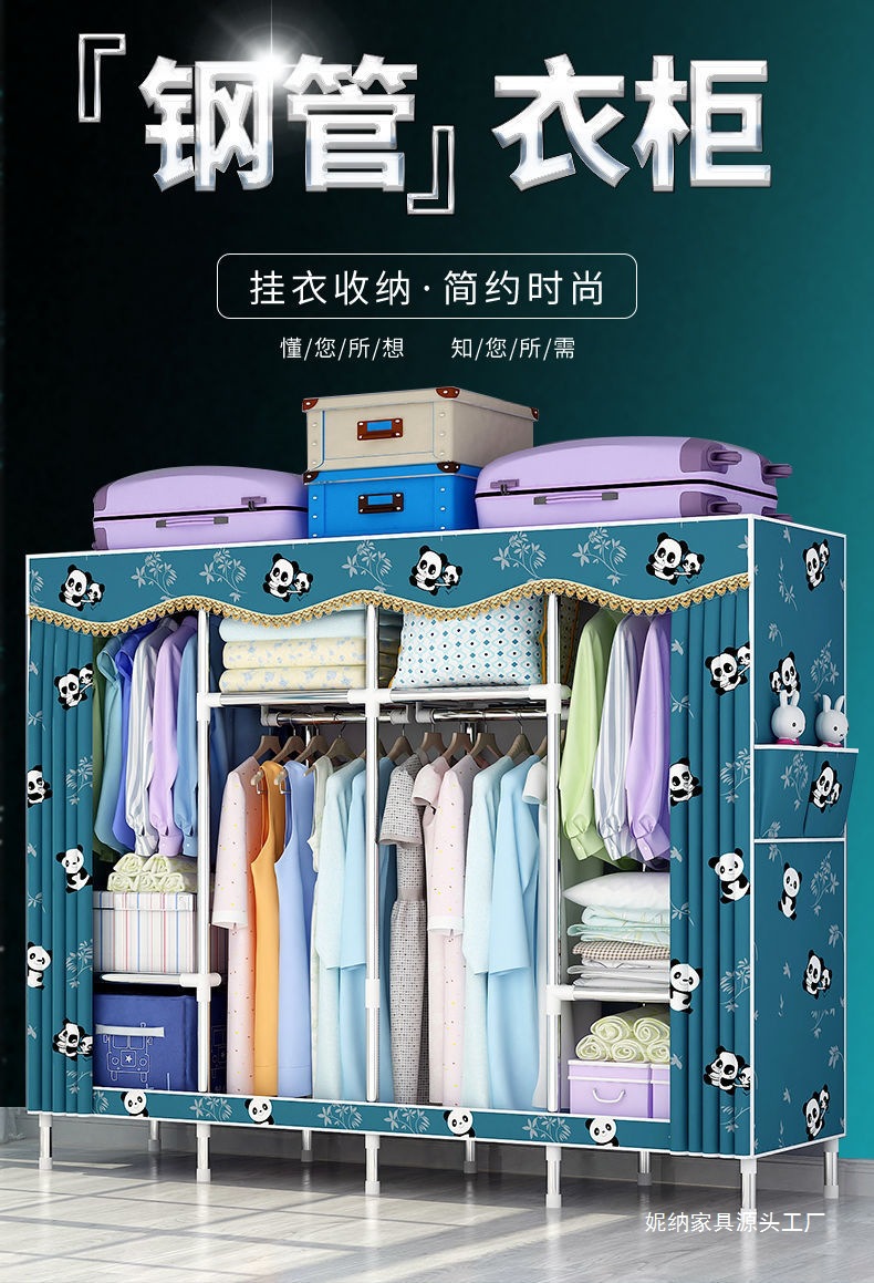 간단한 옷장 강철 파이프 천 옷장 두껍고 강화 된 침실 조립 가정용 옷장 임대실 옷 보관 선반