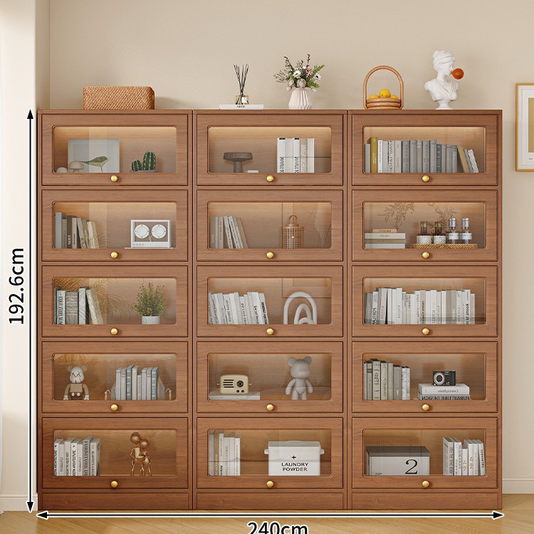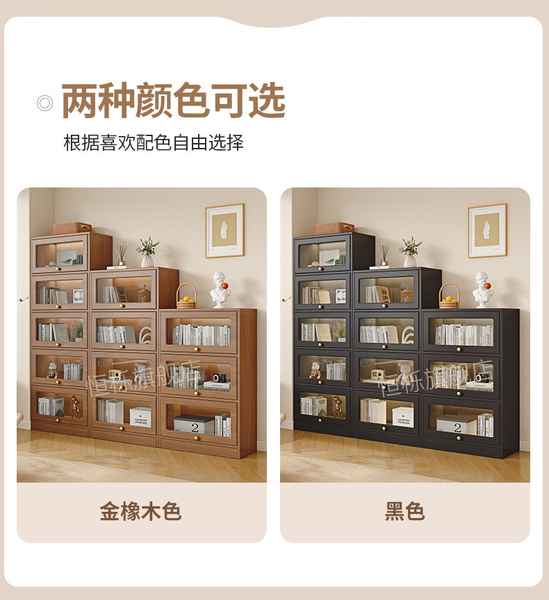 방진 책장 유리 문 단단한 나무 책장 보관 랙 문 바닥 가정용 간단한 거실 디스플레이 보관 캐비닛스토어 가기