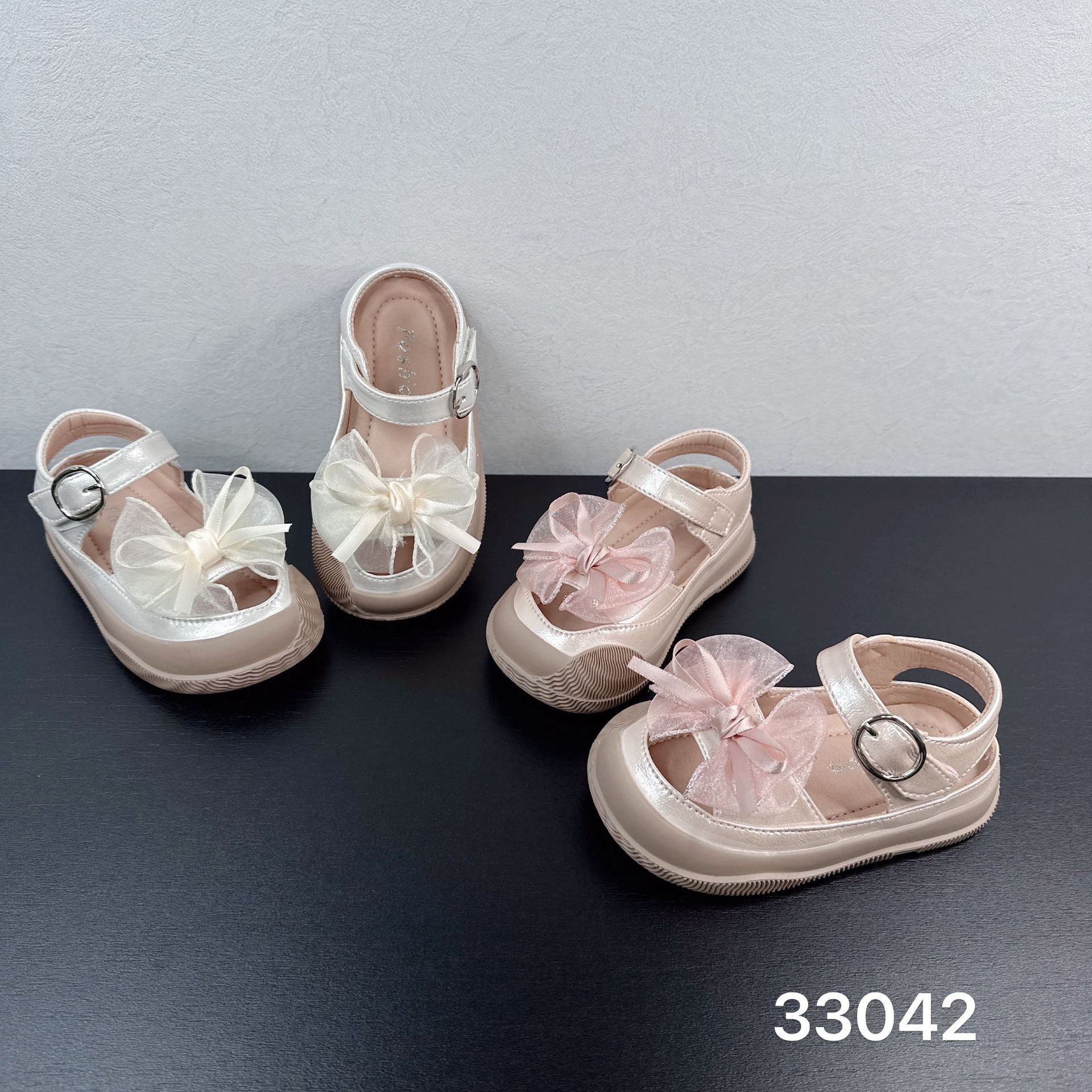 33042 2025 여름 새 샌들 한국 스타일 소녀 진주 샌들 1-3 년 된 활 공주 샌들
