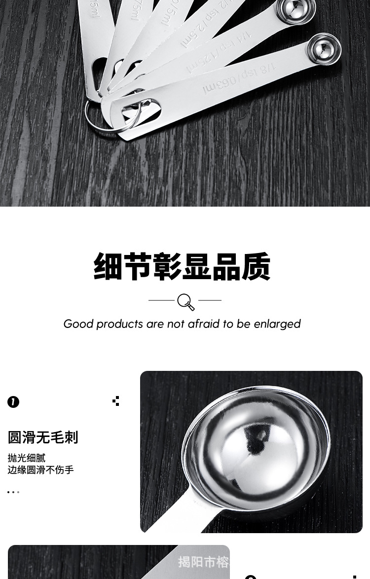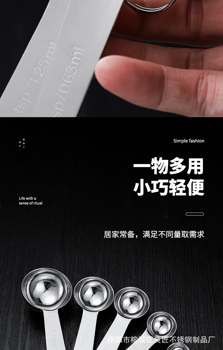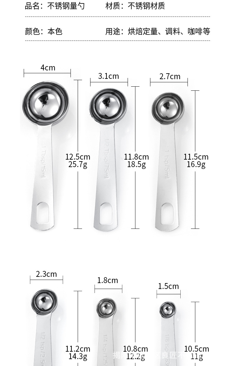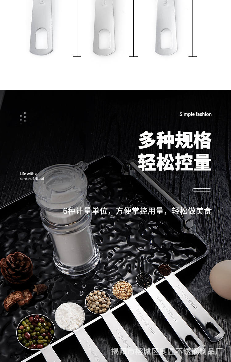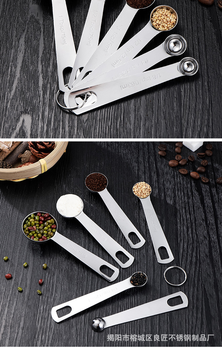 국경 간 스테인레스 스틸 측정 숟가락 6 피스 측정 숟가락 세트 주방 가정용 베이킹 도구 커피 스푼