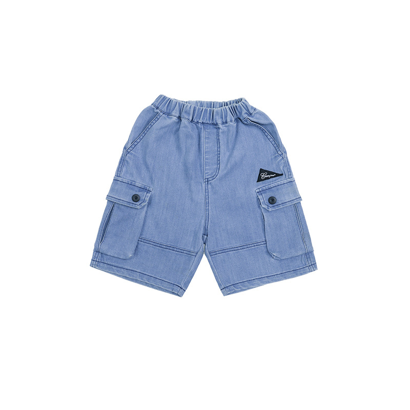 어린이 바지 2025 여름 새 소년의 큰 포켓 데님 크레인 바지 큰 어린이 캐주얼 바지 유행 바지스토어 가기