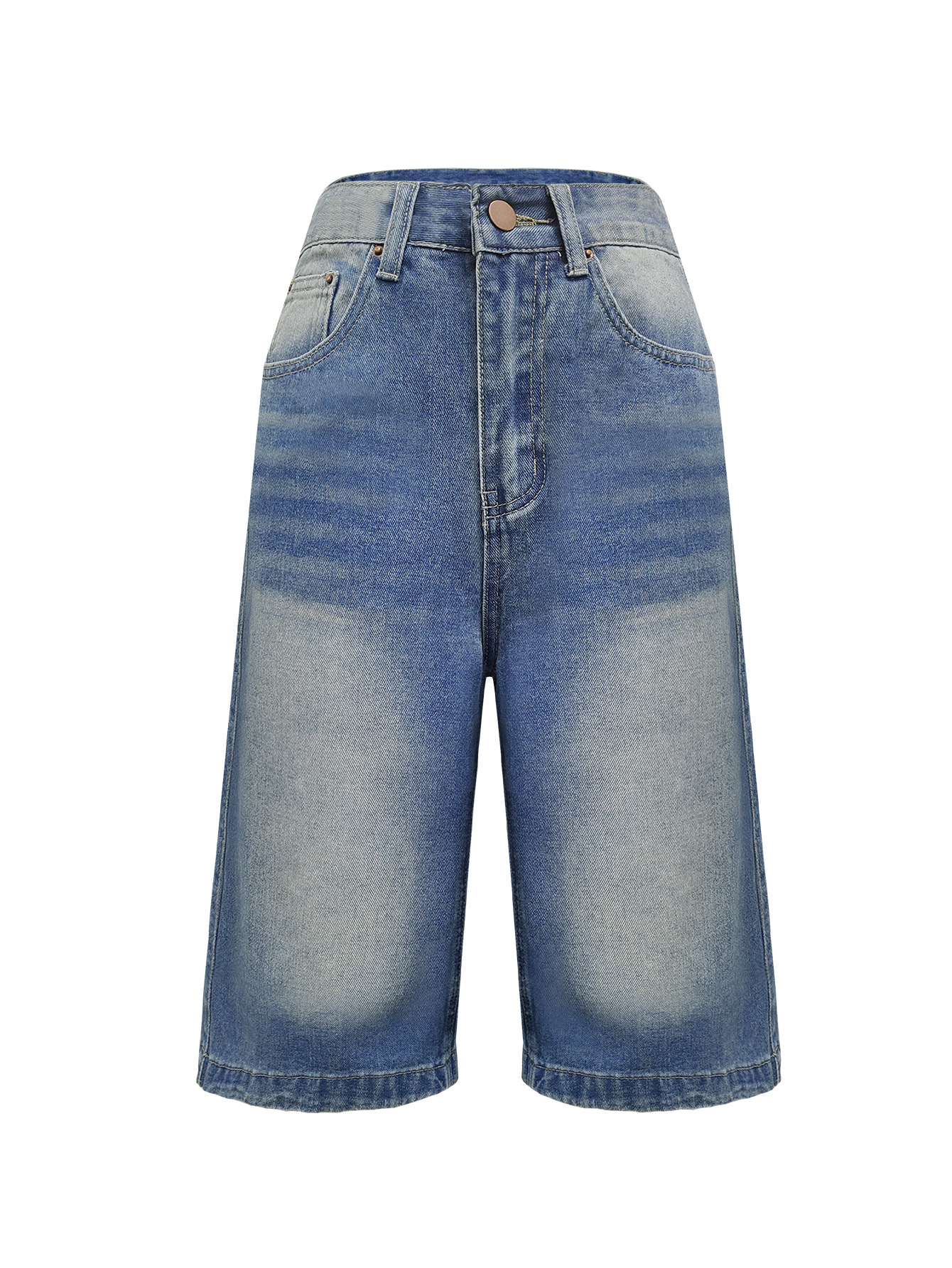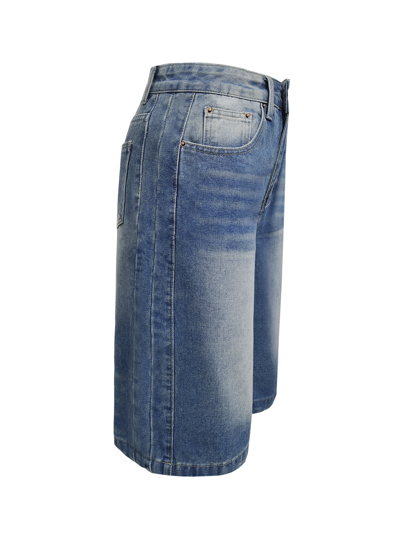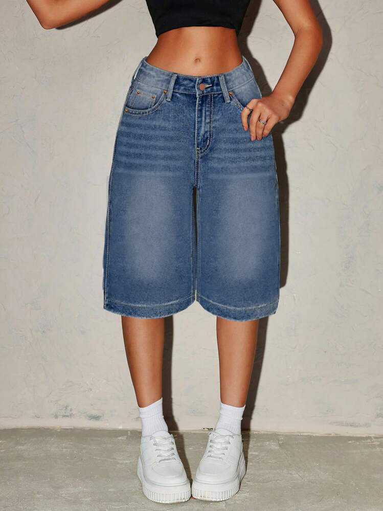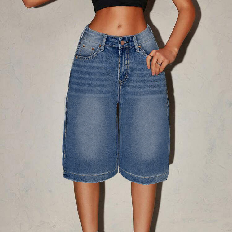 해외 무역 아마존 원산지 공장 도매 워싱 스트레이트 데님 반바지 여성용 루즈핏 와이드 레그 다용도 미디 팬츠스토어 가기