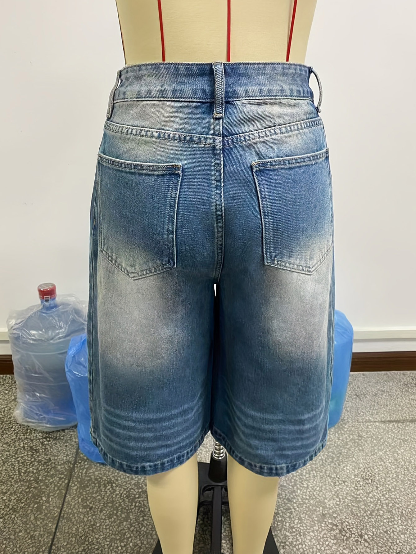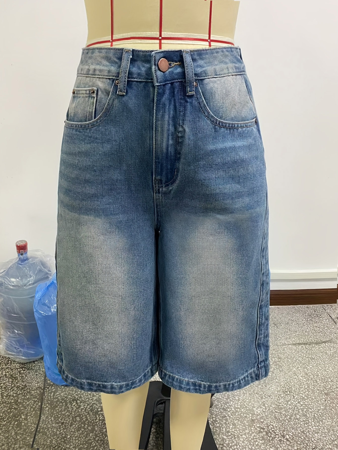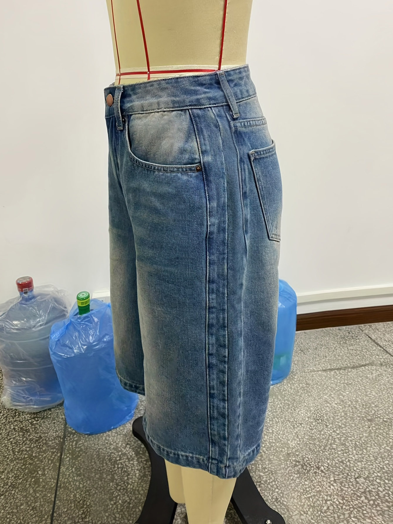 해외 무역 아마존 원산지 공장 도매 워싱 스트레이트 데님 반바지 여성용 루즈핏 와이드 레그 다용도 미디 팬츠스토어 가기