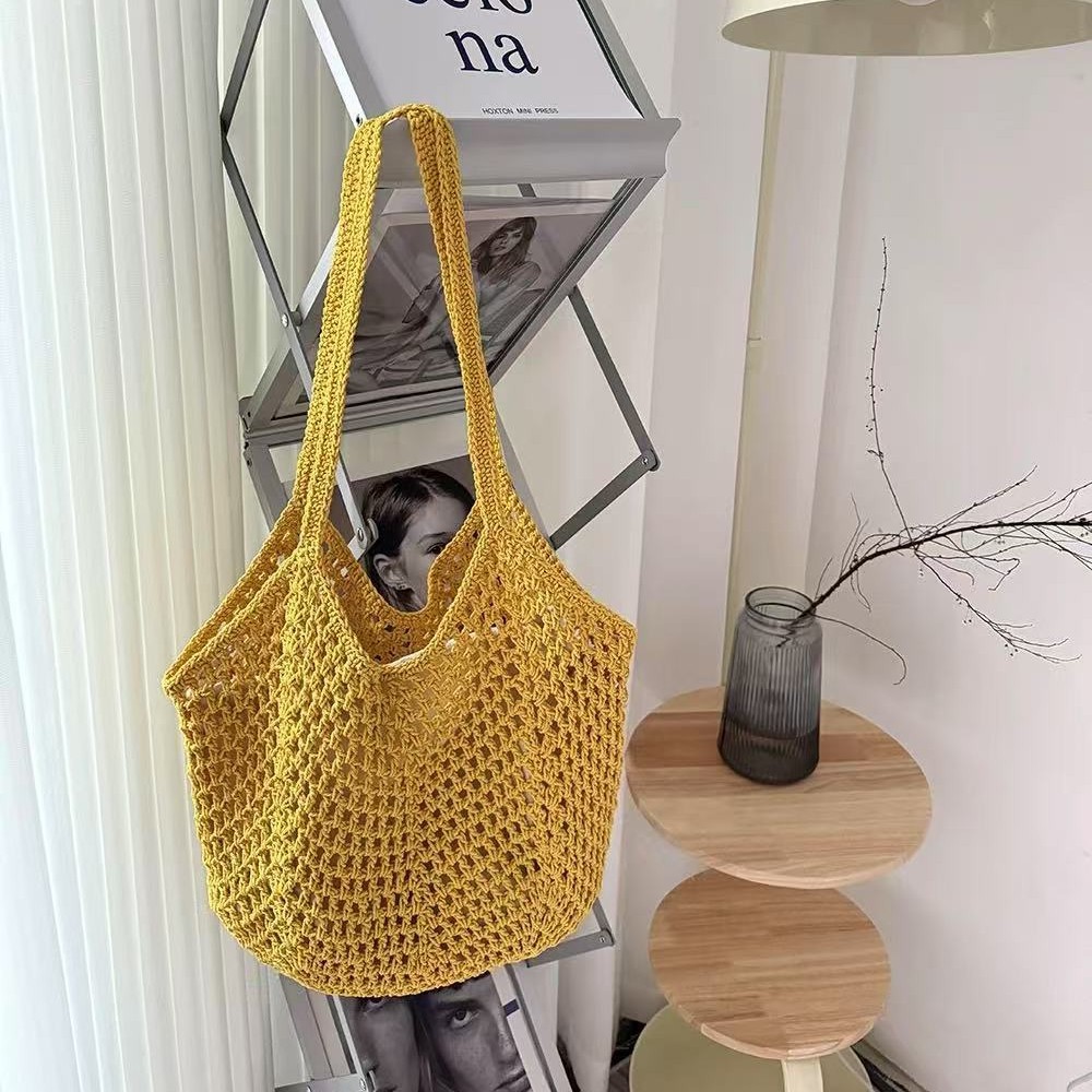 여름 새로운 대용량 짠 어깨 가방 겨드랑이 가방 토트 백 여성 여름 짠 가방 해변 비치 가방