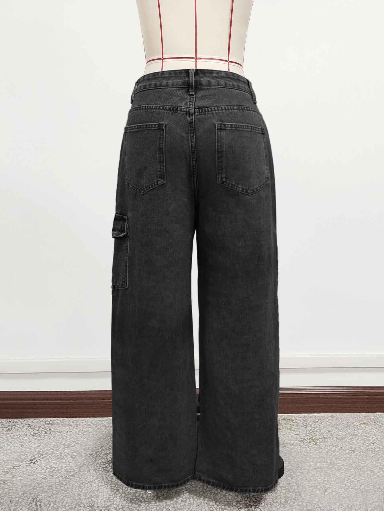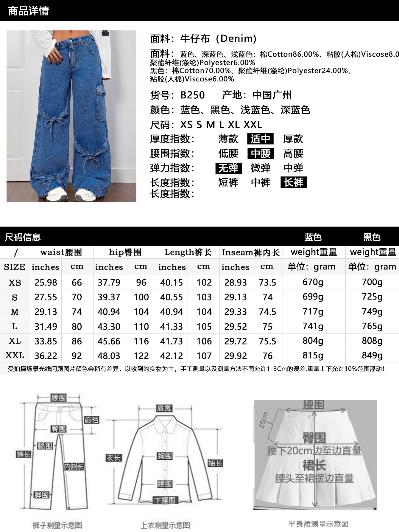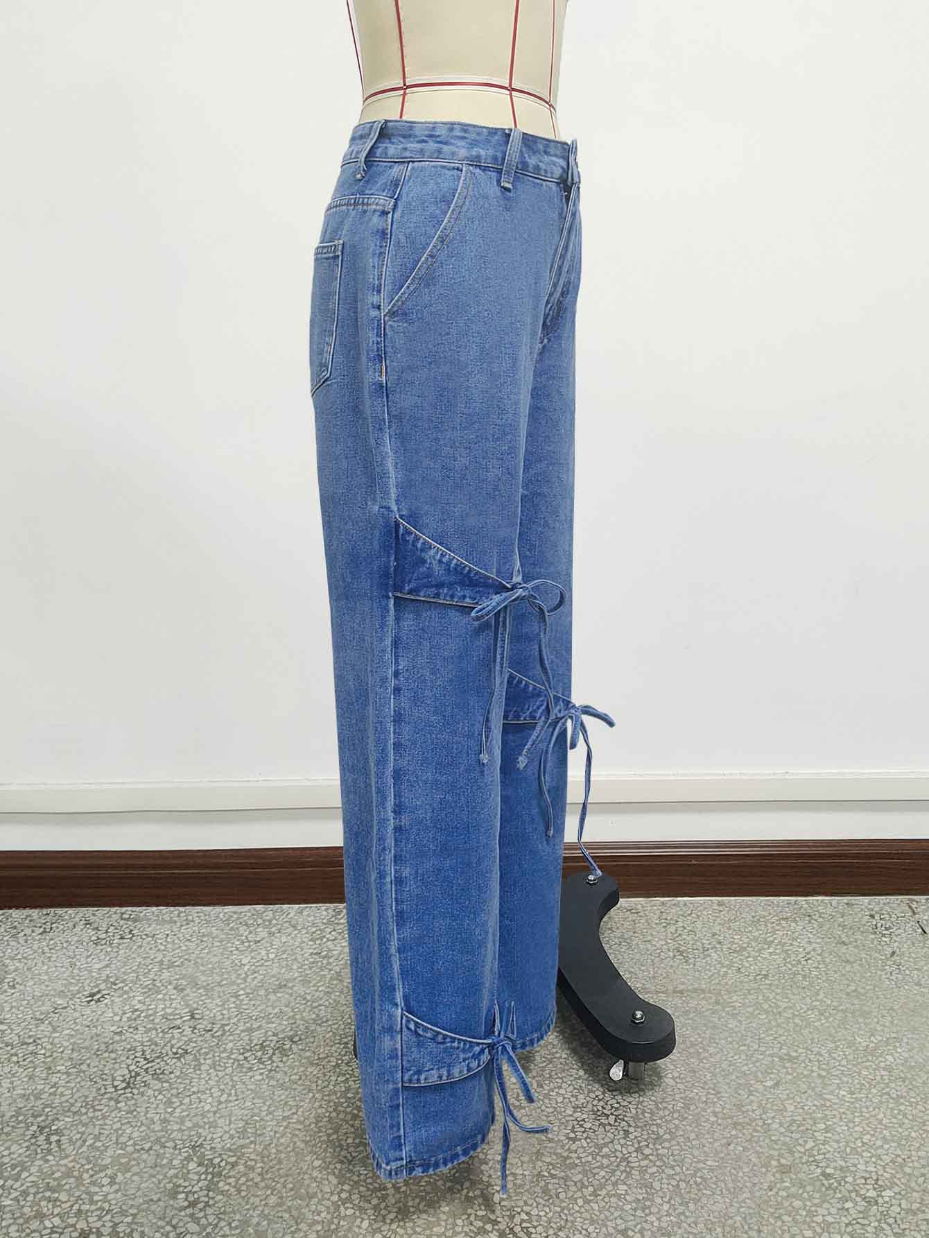 국경 간 대외 무역 아마존 유럽과 미국 디자인 나비 넥타이 툴링 스타일 청바지 여성용 캐주얼 스트레이트 레그 팬츠 와이드 레그 팬츠스토어 가기