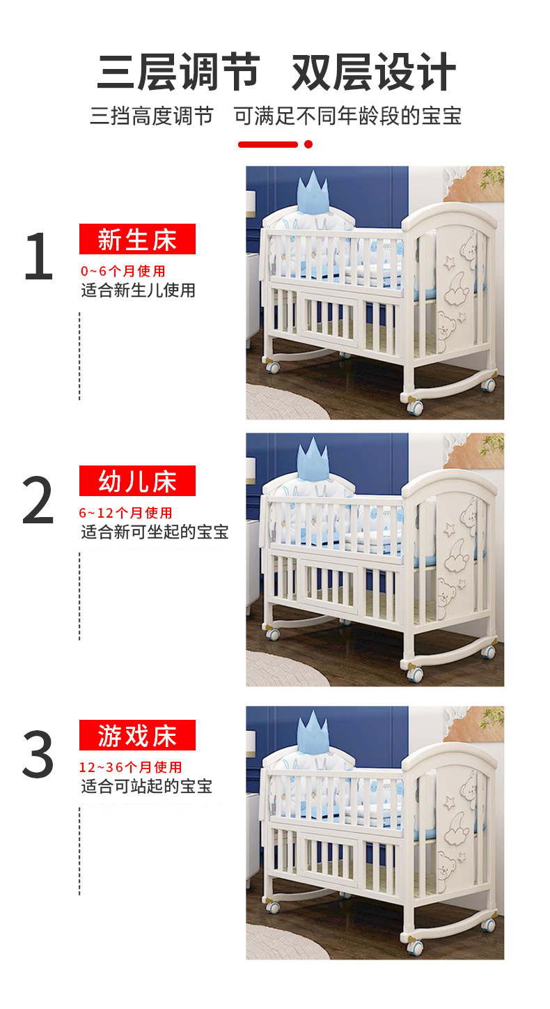 다양한 색상의 유아용 침대는 12세까지 사용할 수 있으며 넓은 공간으로 아기가 더 편안하게 잠을 자고 있습니다.스토어 가기