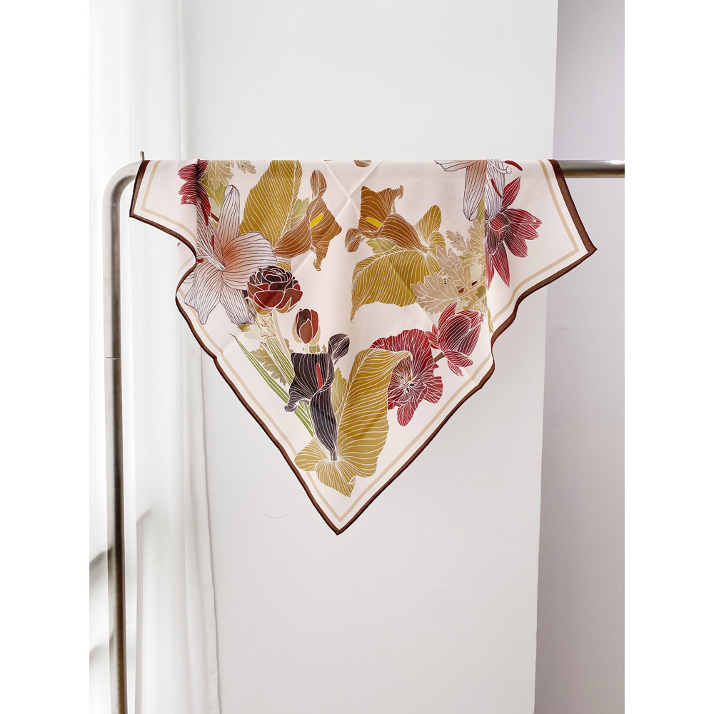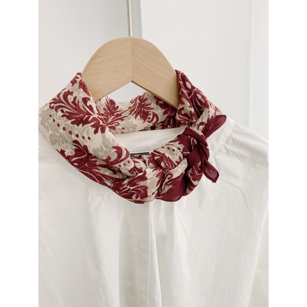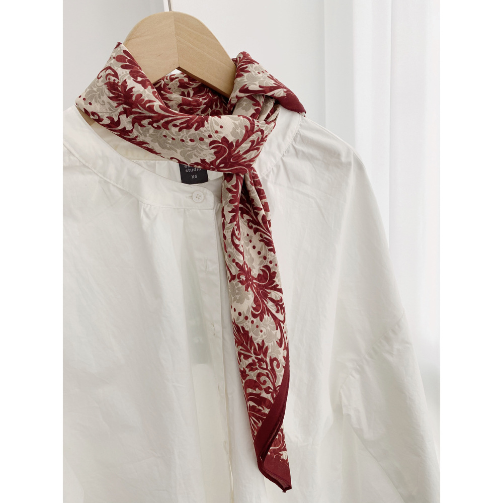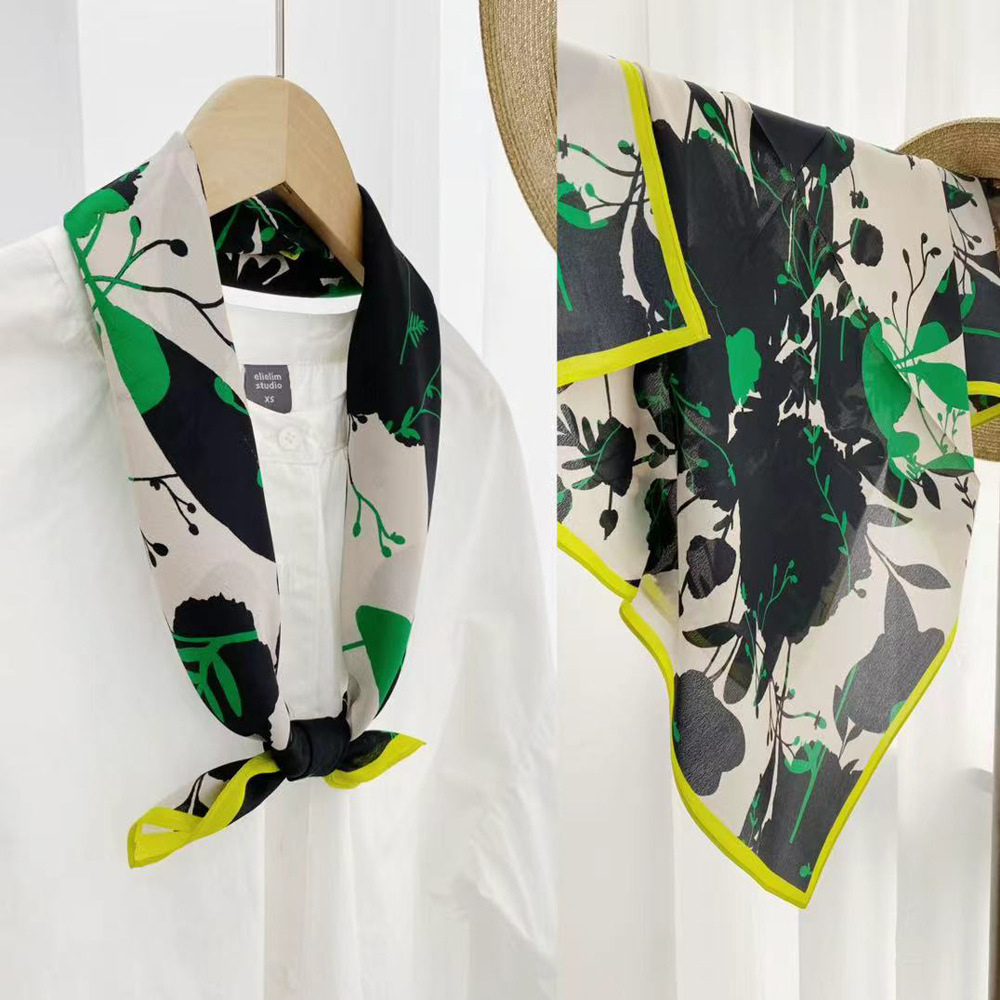 한국 스타일 실크 크레페 드 친 예술적 복고풍 작은 스퀘어 스카프 발가락 실크 스카프 여성의 봄과 가을 목 보호 스카프 프랑스 스카프