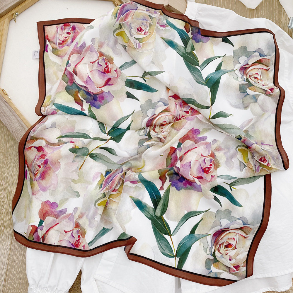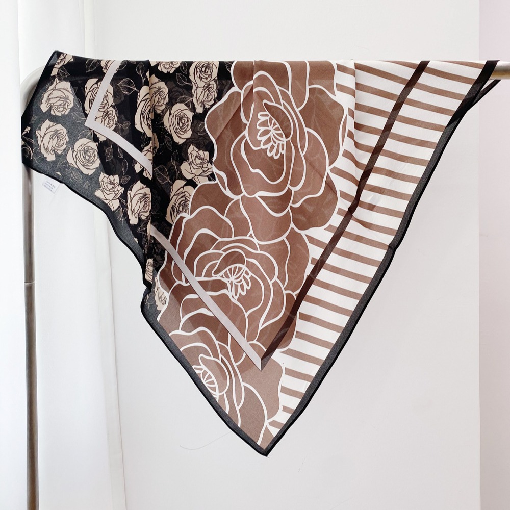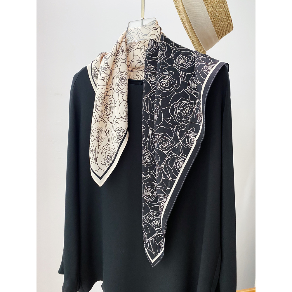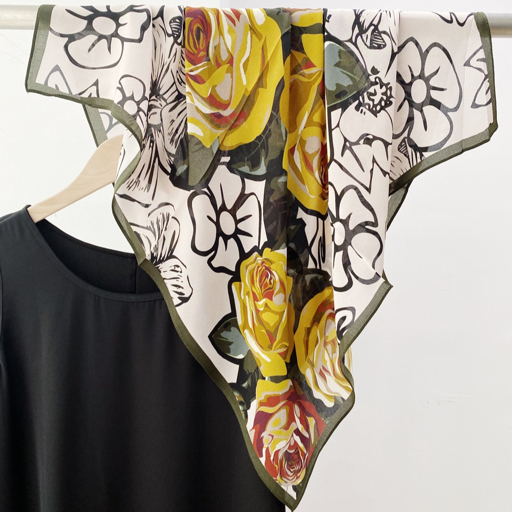 한국 스타일 실크 크레페 드 친 예술적 복고풍 작은 스퀘어 스카프 발가락 실크 스카프 여성의 봄과 가을 목 보호 스카프 프랑스 스카프