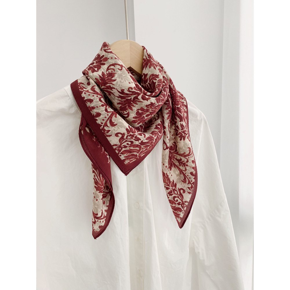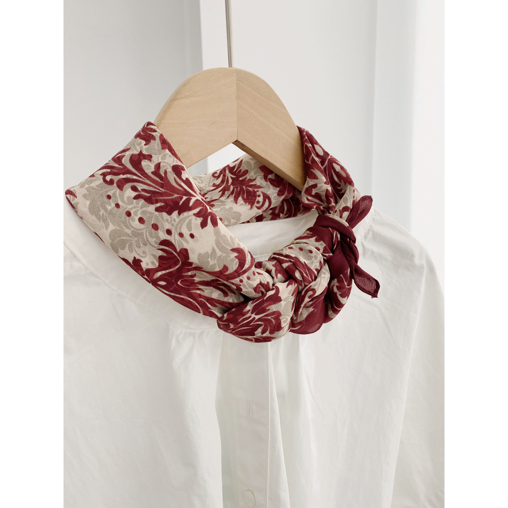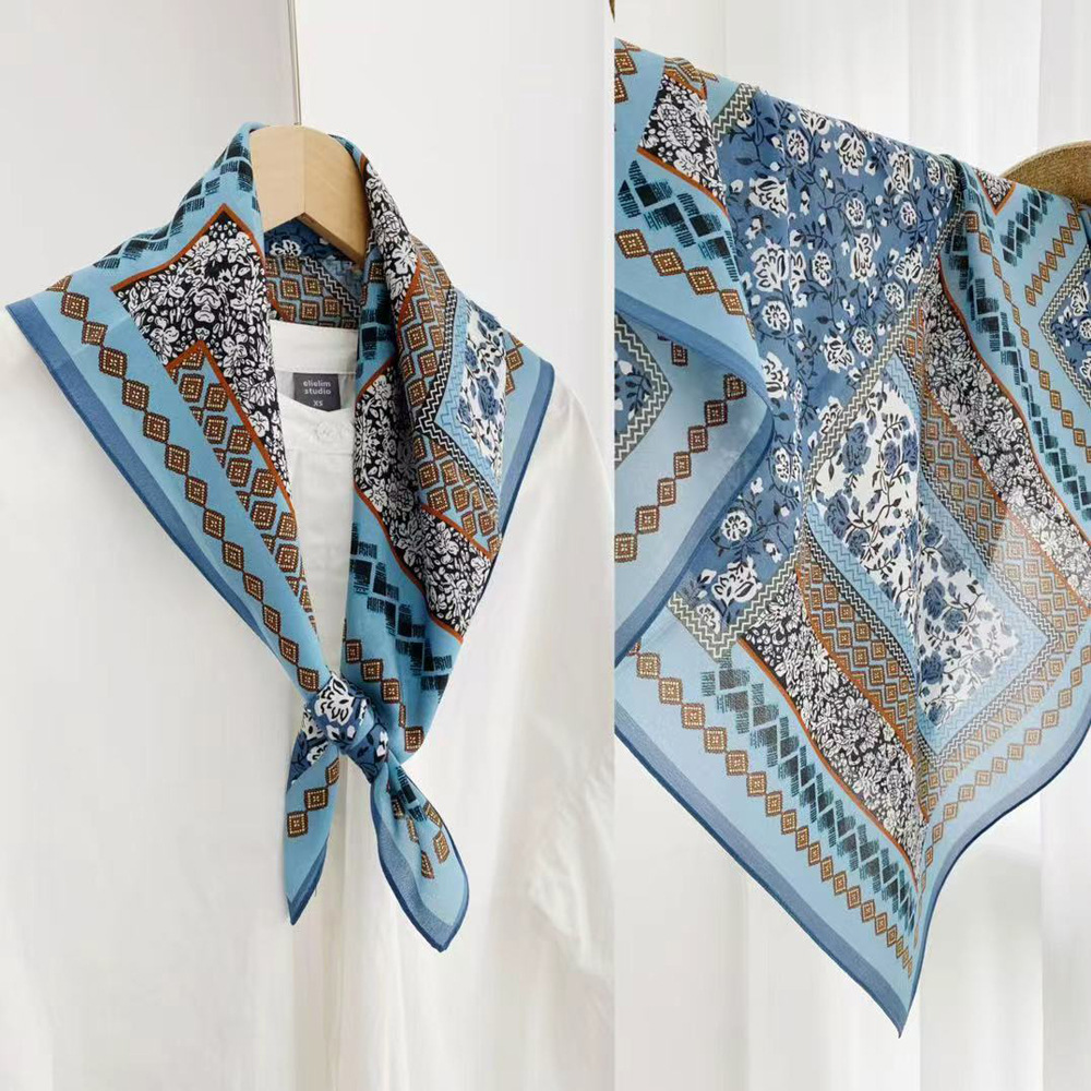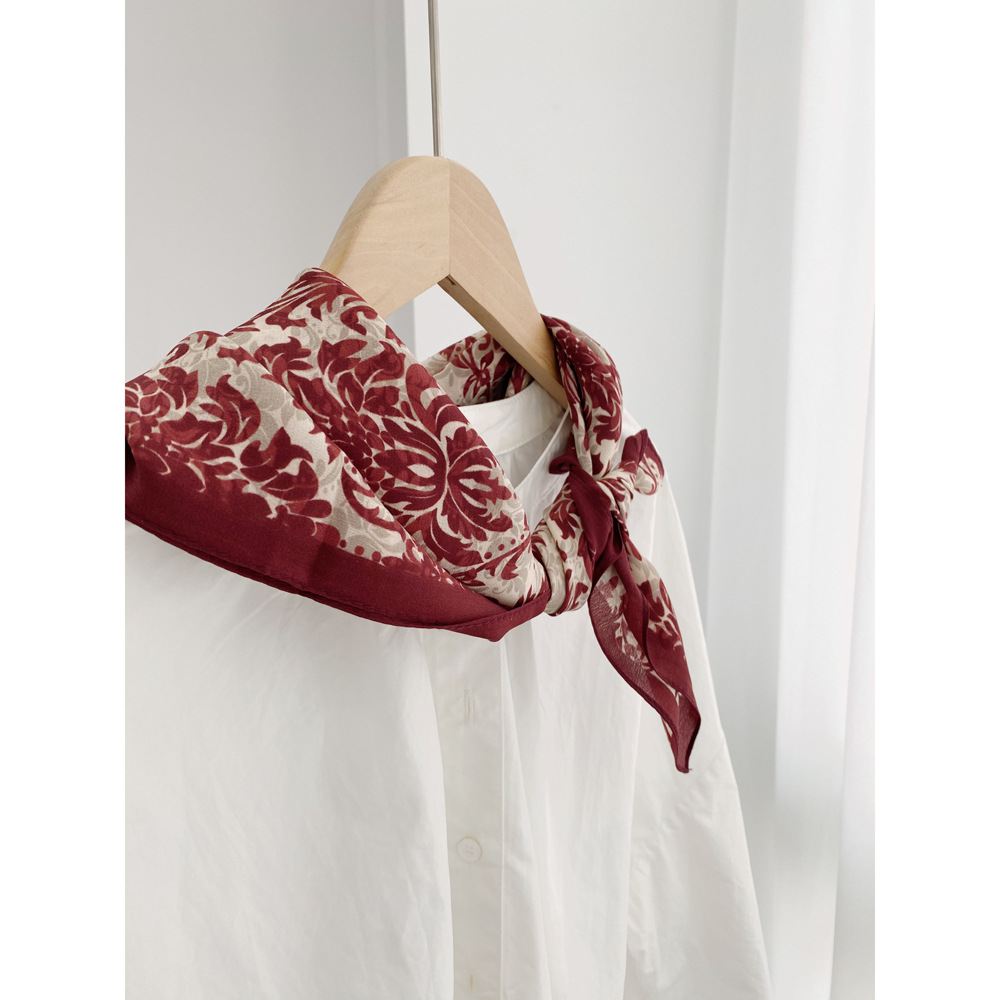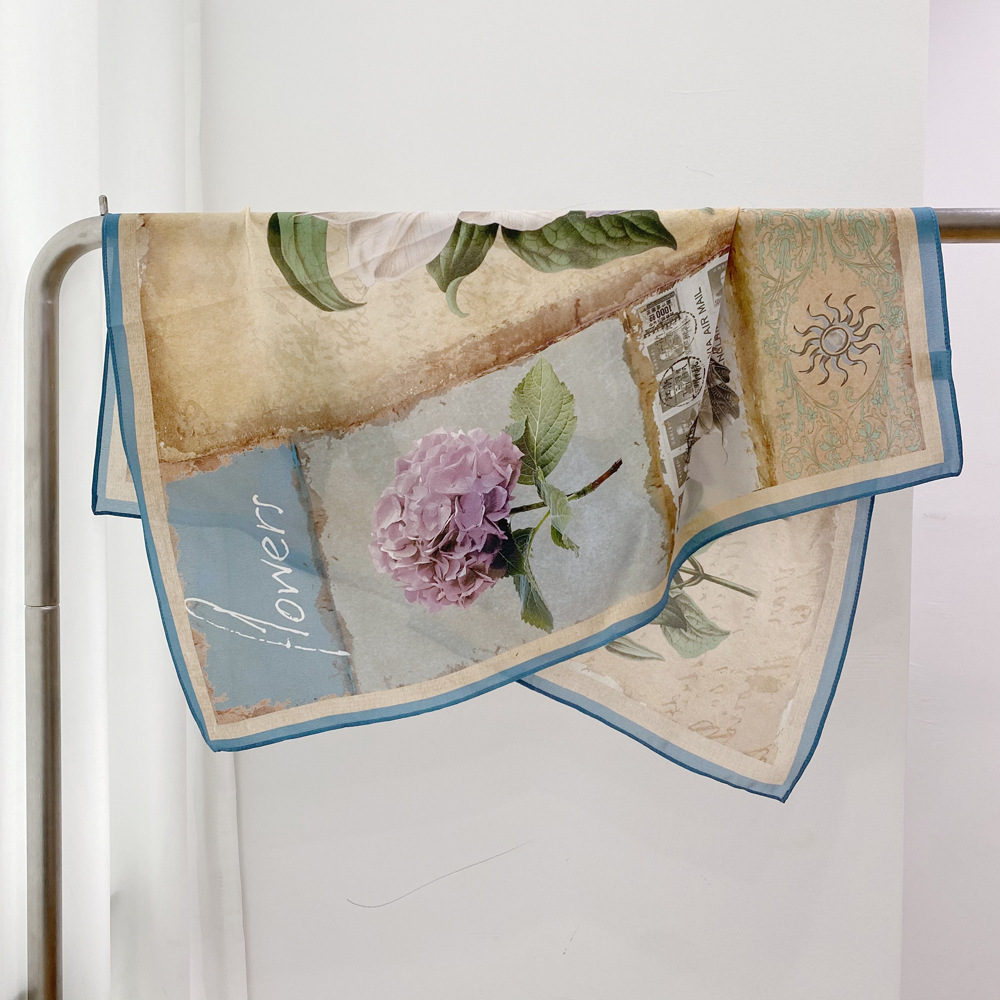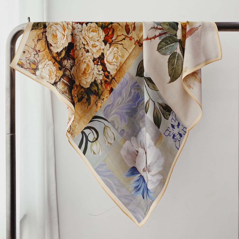 한국 스타일 실크 크레페 드 친 예술적 복고풍 작은 스퀘어 스카프 발가락 실크 스카프 여성의 봄과 가을 목 보호 스카프 프랑스 스카프스토어 가기
