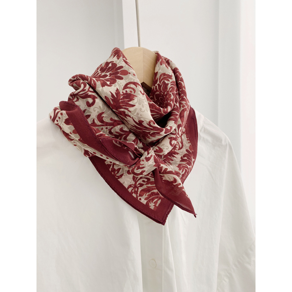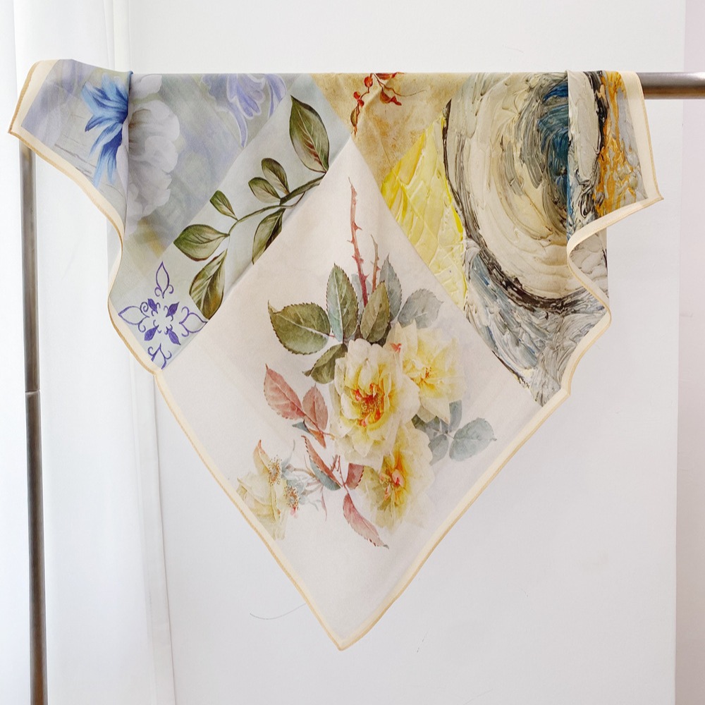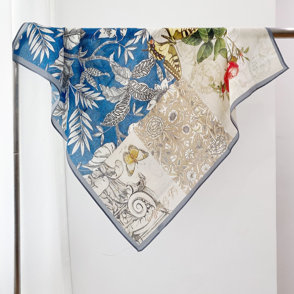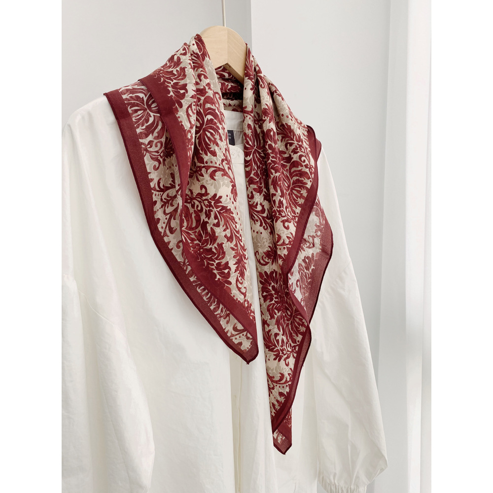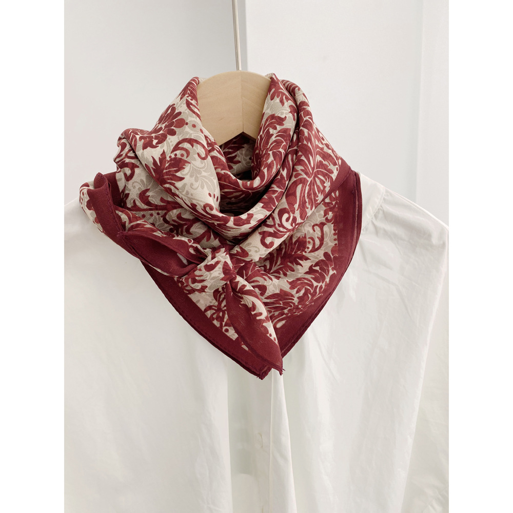 한국 스타일 실크 크레페 드 친 예술적 복고풍 작은 스퀘어 스카프 발가락 실크 스카프 여성의 봄과 가을 목 보호 스카프 프랑스 스카프스토어 가기