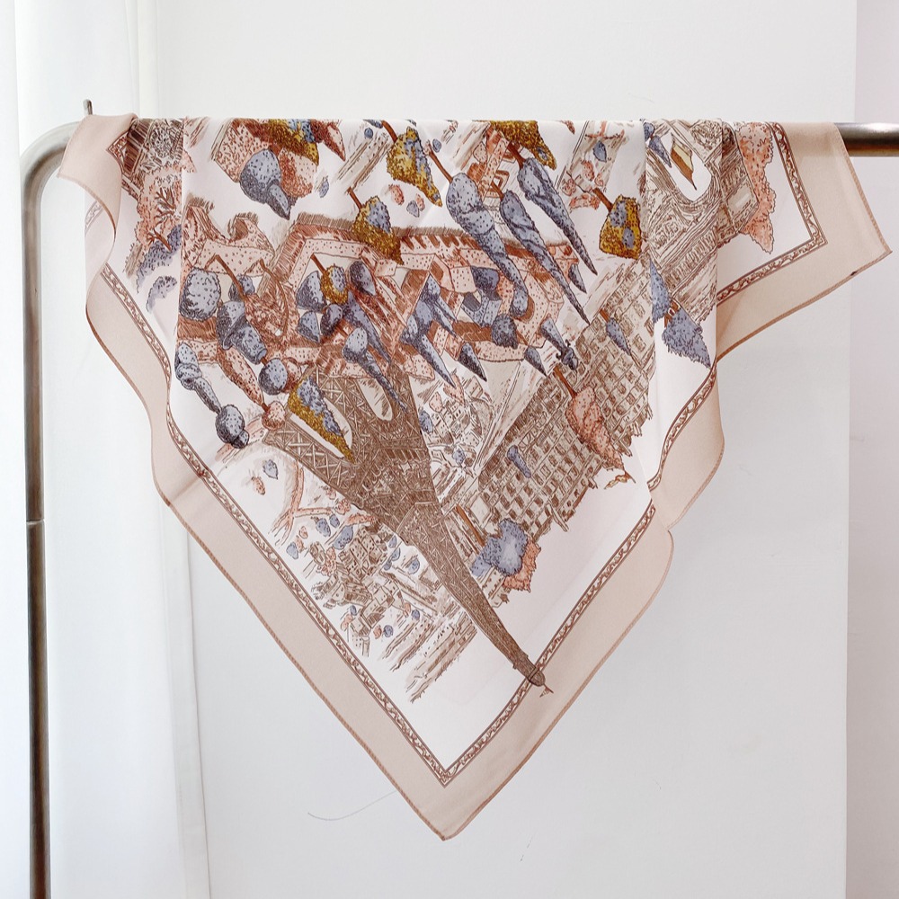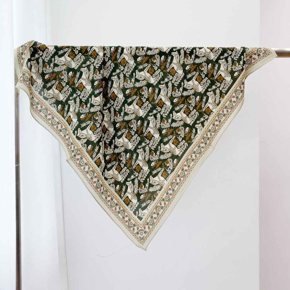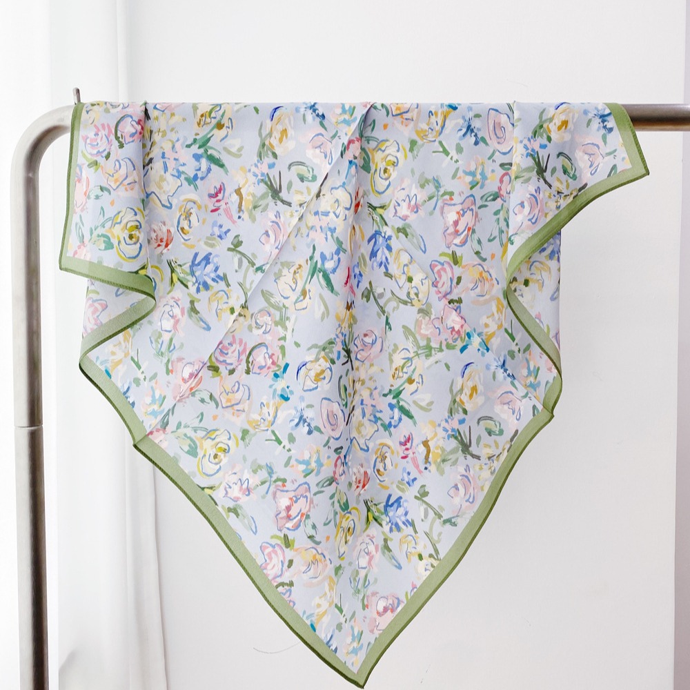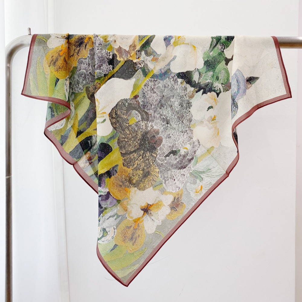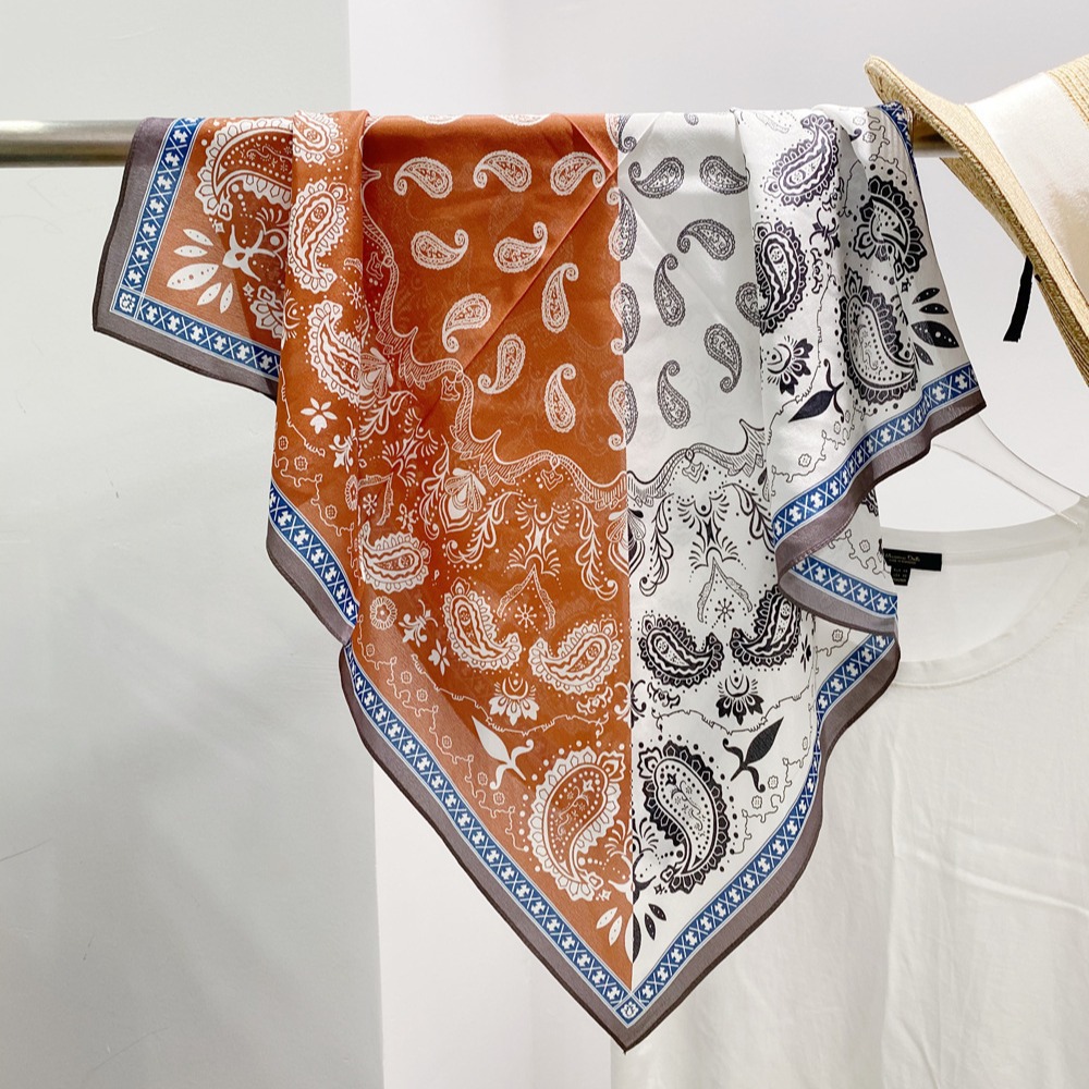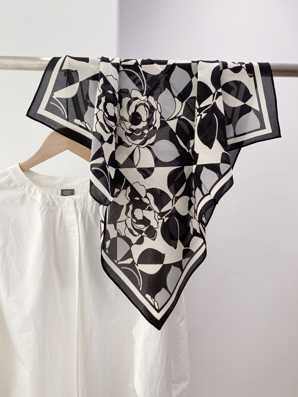 한국 스타일 실크 크레페 드 친 예술적 복고풍 작은 스퀘어 스카프 발가락 실크 스카프 여성의 봄과 가을 목 보호 스카프 프랑스 스카프스토어 가기