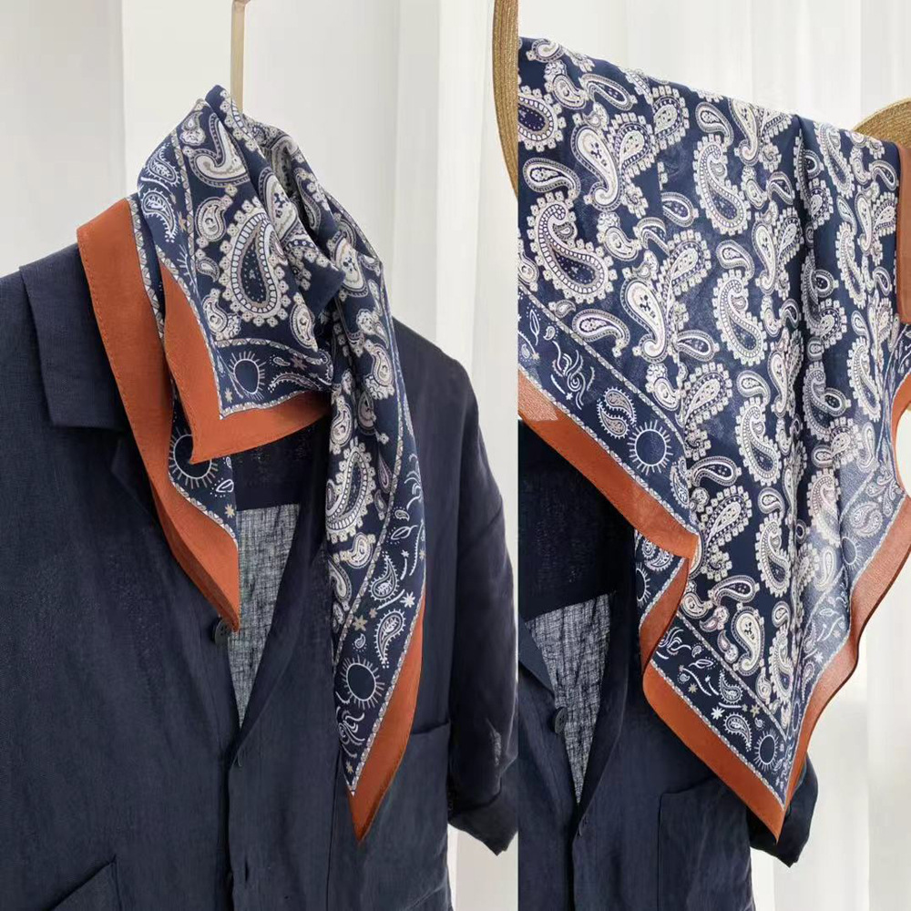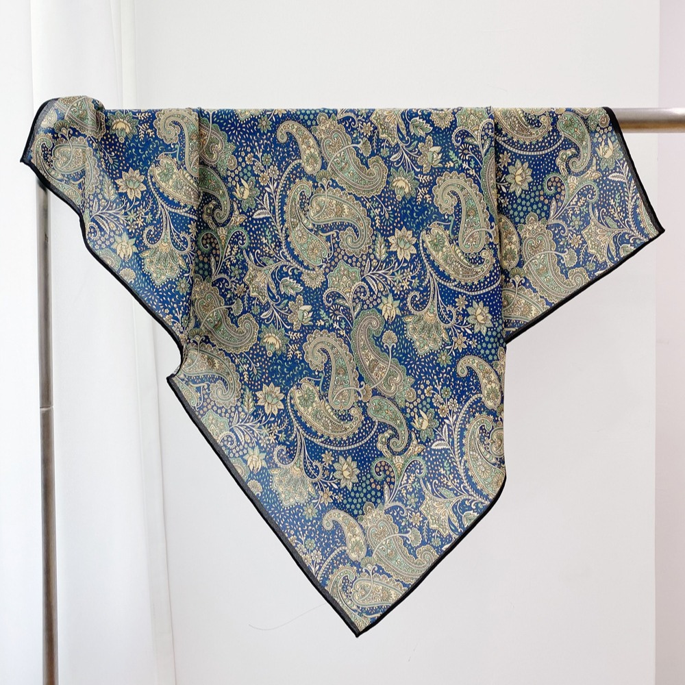 • 오렌지 엣지 블루 캐슈 플라워 크레이프 드 신 70