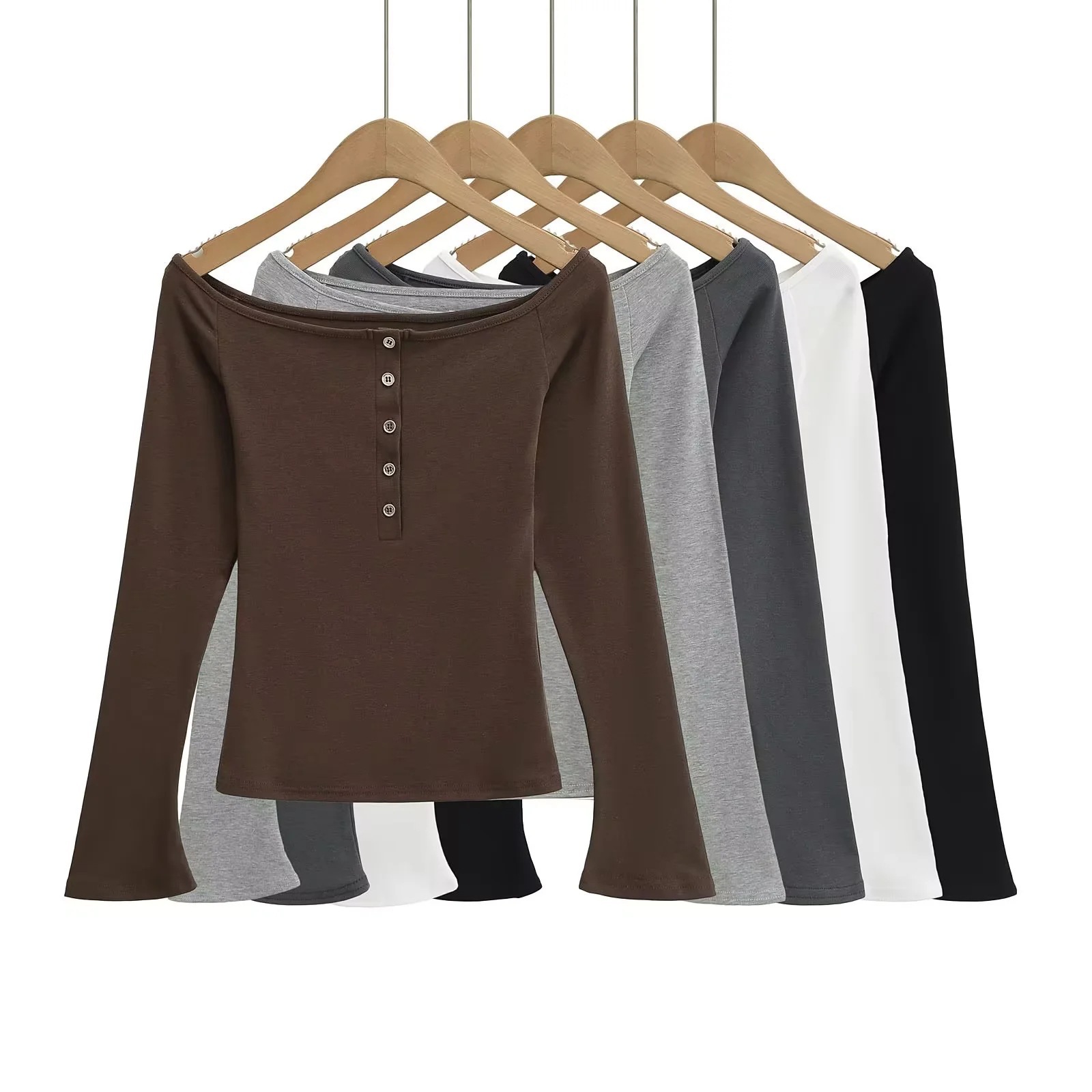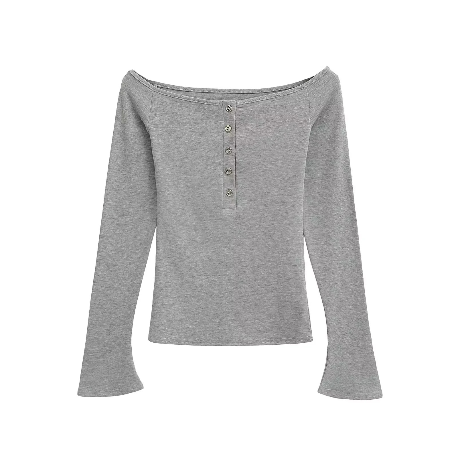 Pure lust hot girl 섹시한 원 숄더 오프 숄더 여성용 패션 탑 ins 인터넷 연예인 슬림 버튼 장식 긴팔 티셔츠스토어 가기