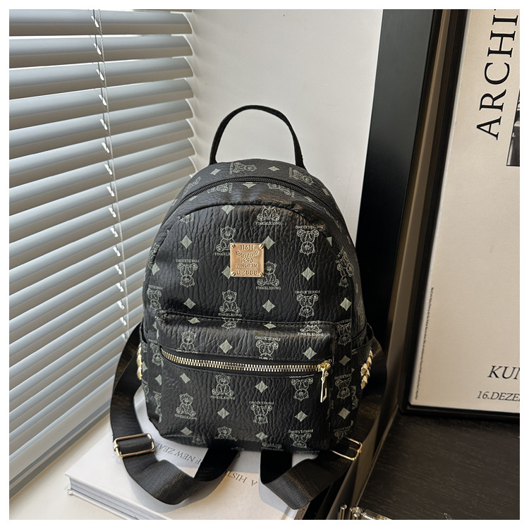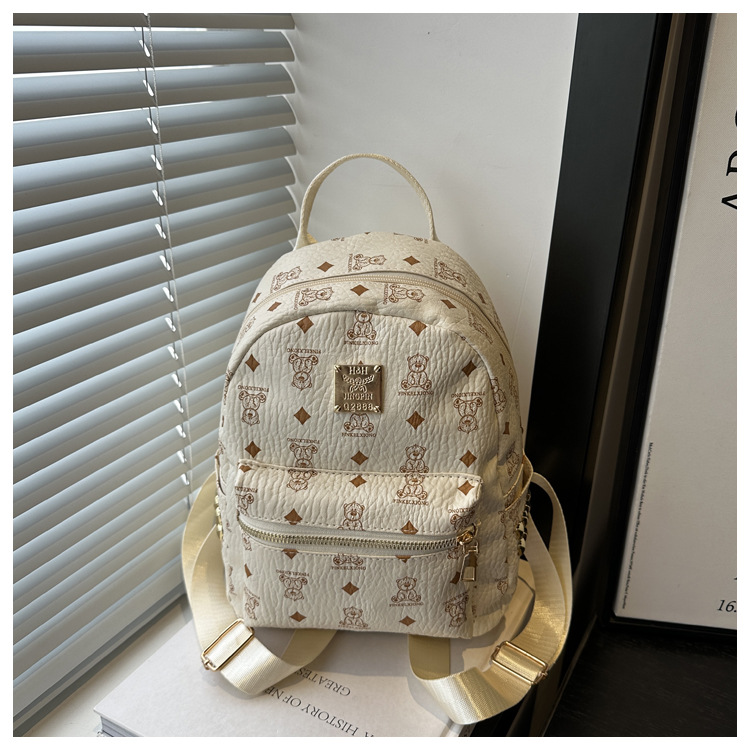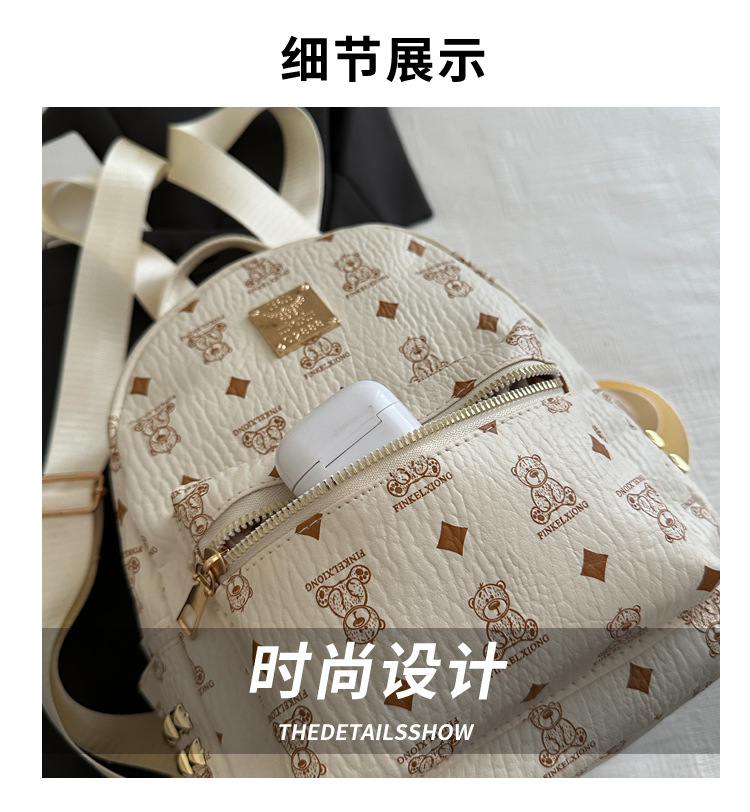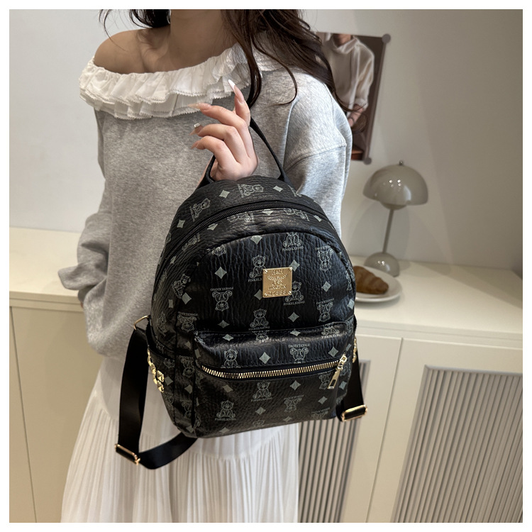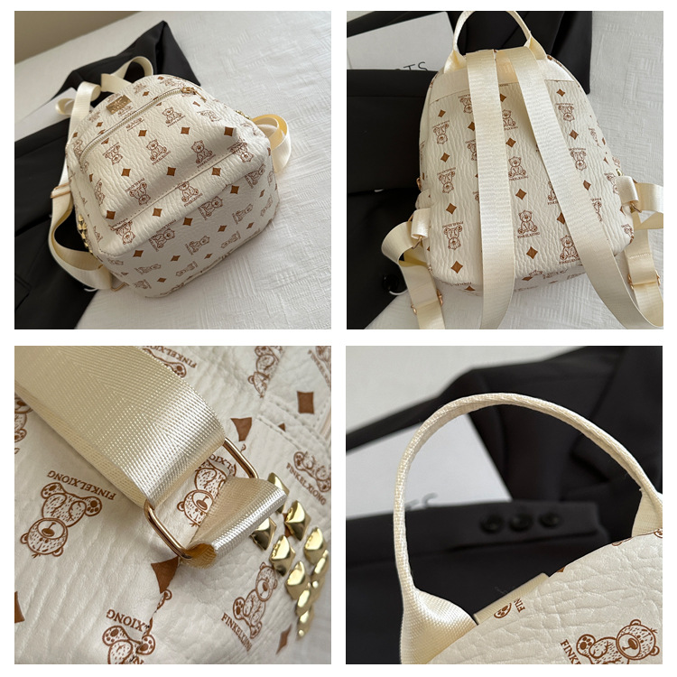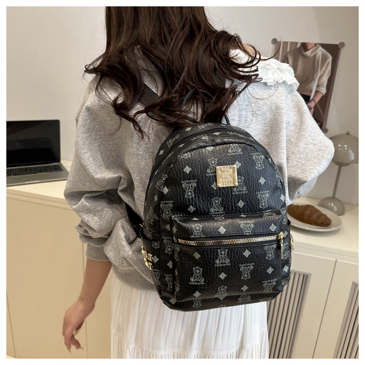 국경 간 여성 가방 2025 새로운 패션 복고풍 곰 인쇄 배낭 대용량 학생 책가방 도매스토어 가기