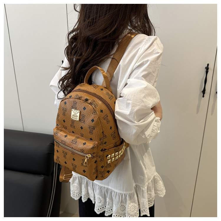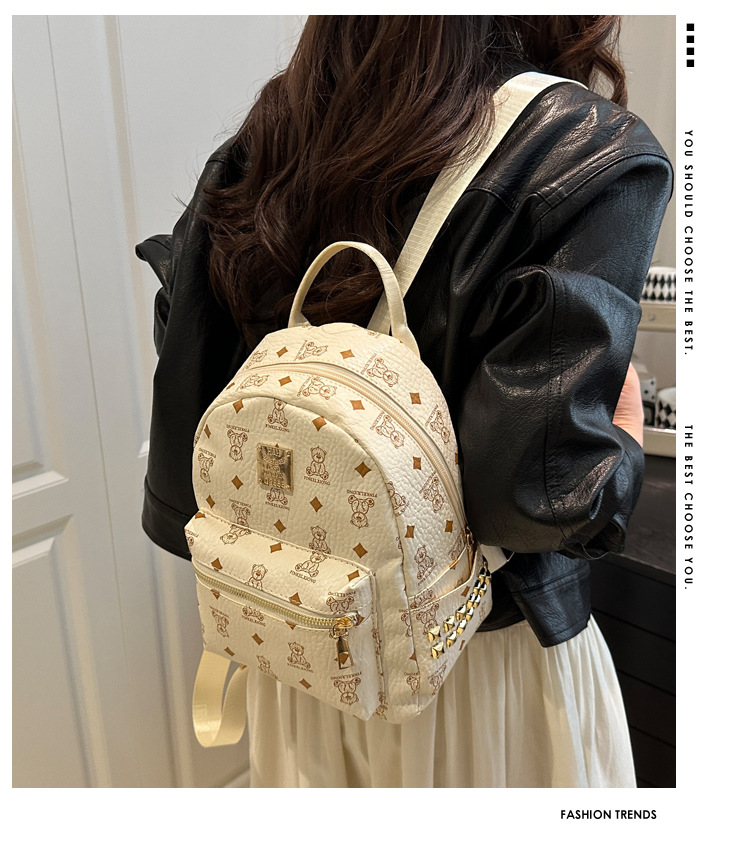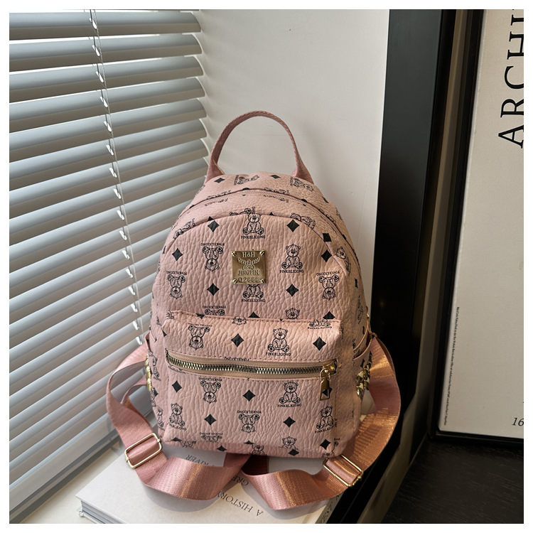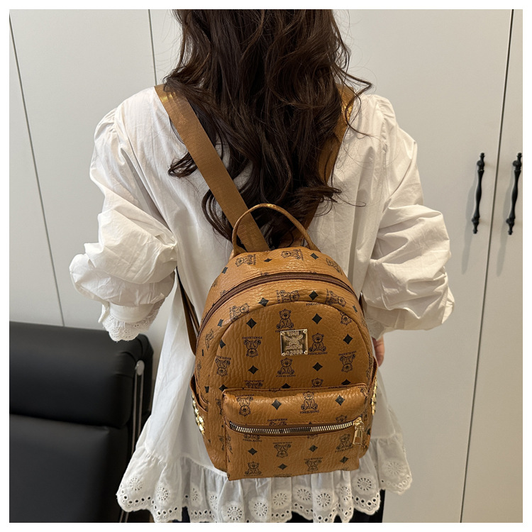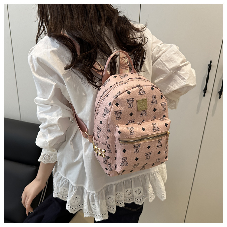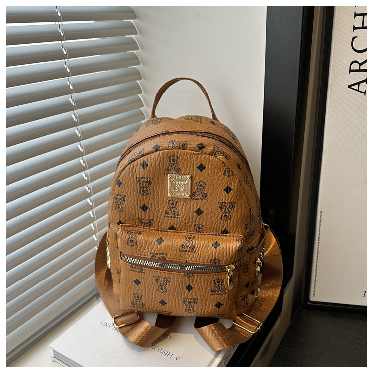 국경 간 여성 가방 2025 새로운 패션 복고풍 곰 인쇄 배낭 대용량 학생 책가방 도매스토어 가기