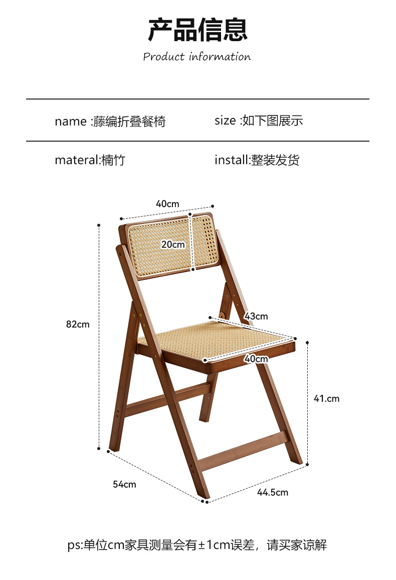 • (앉은키 45) 브라운 라탄 접이식 의자 (접어서 배송)