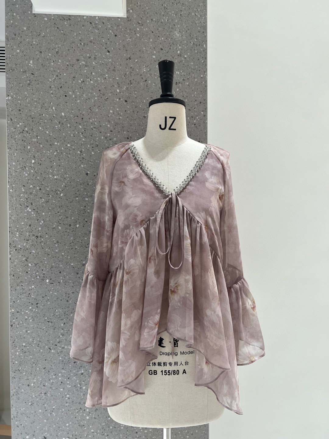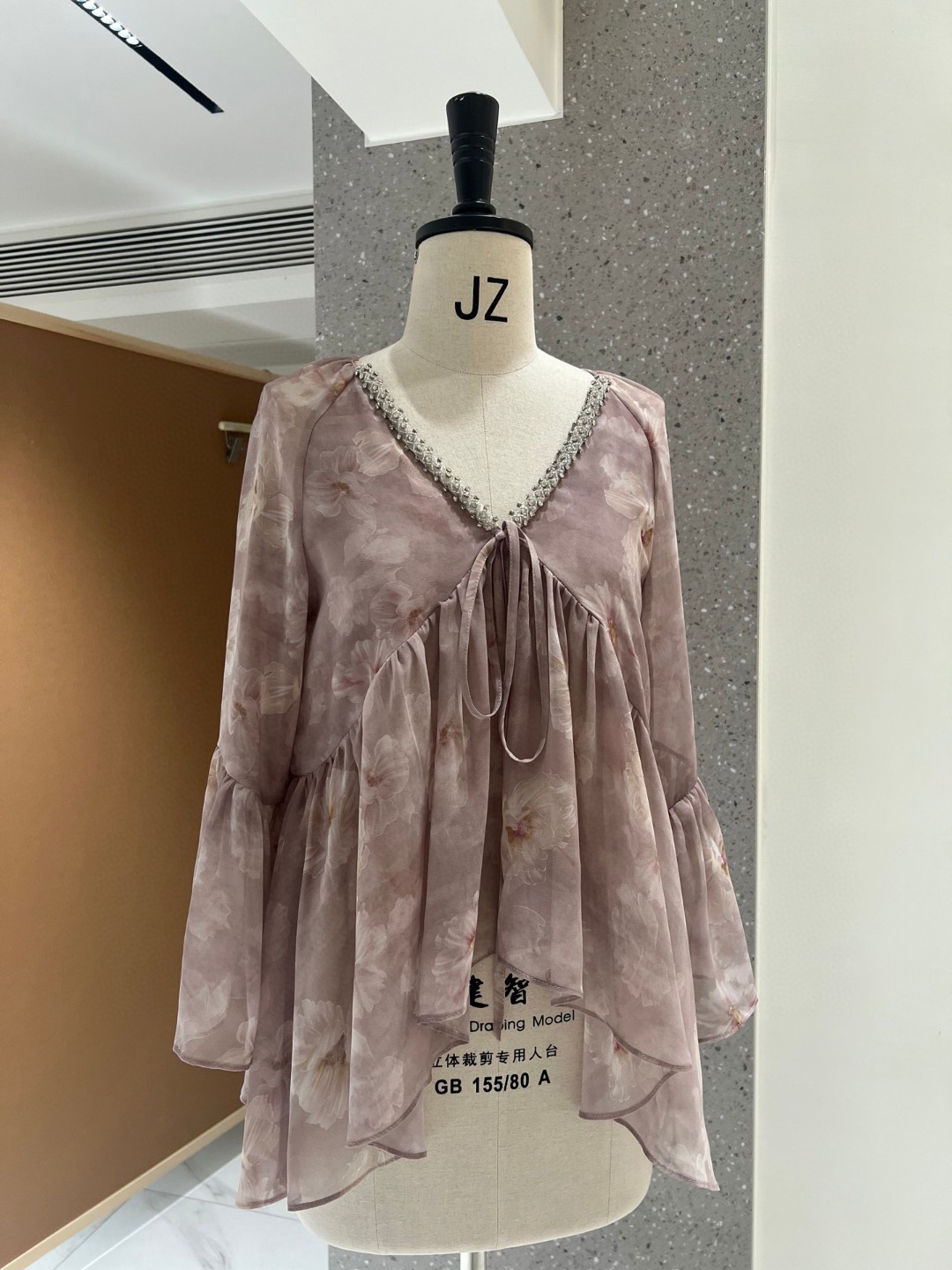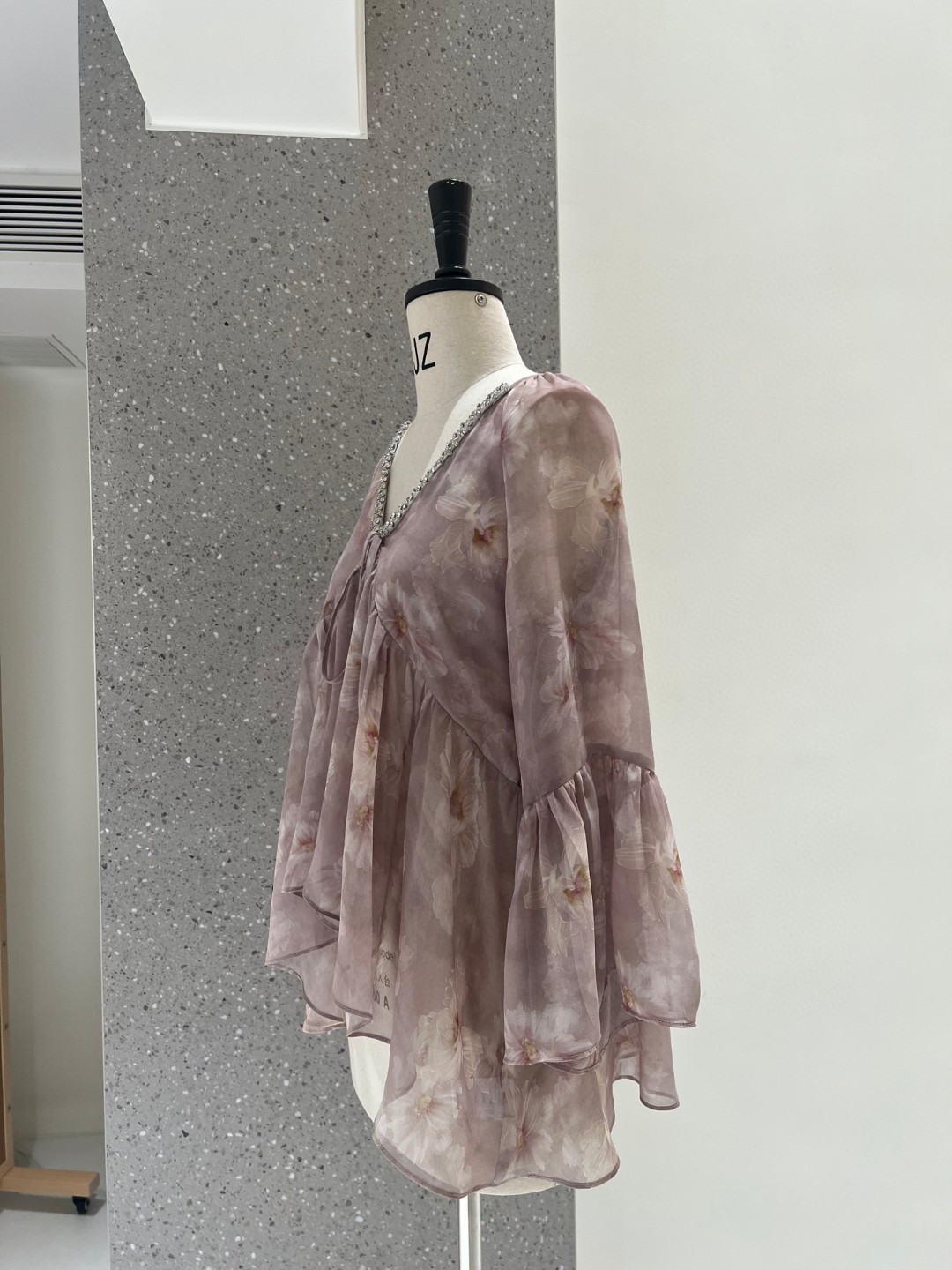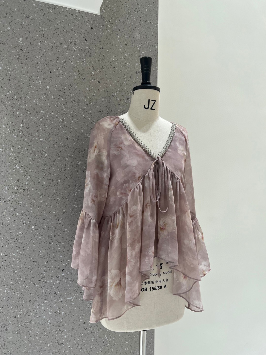 Dirin Ambient V-Neck 네일 드릴 게으른 낙엽 슬리밍 트럼펫 슬리브 쉬폰 셔츠 여성용 홀리데이 플로랄 쇼트 탑스토어 가기