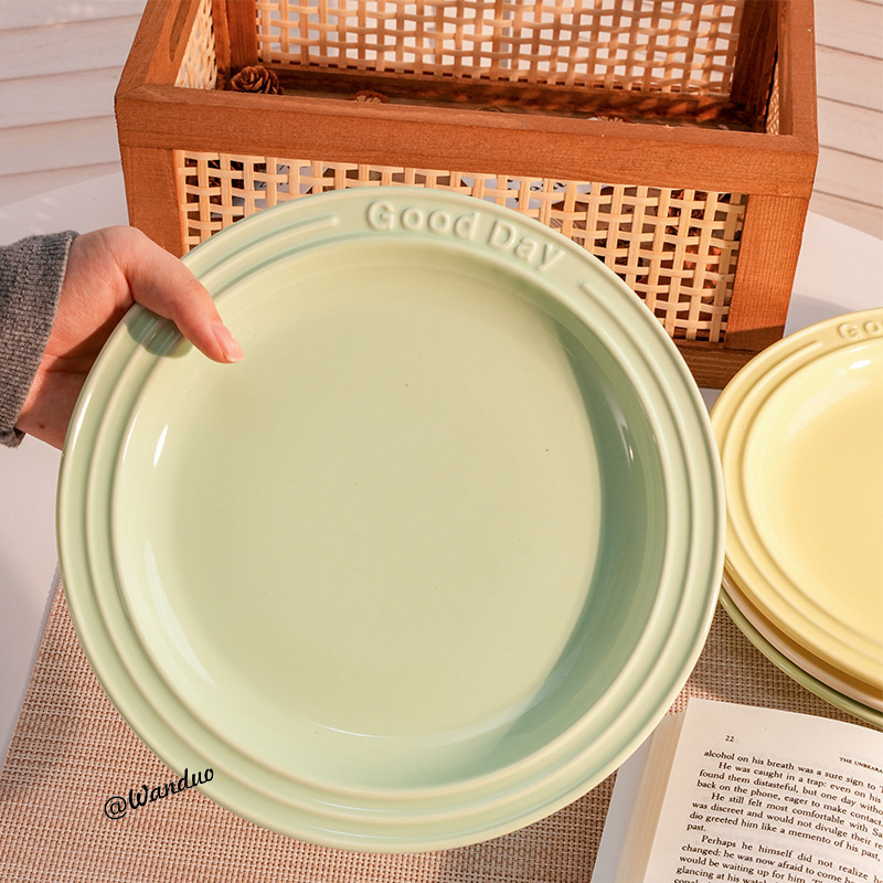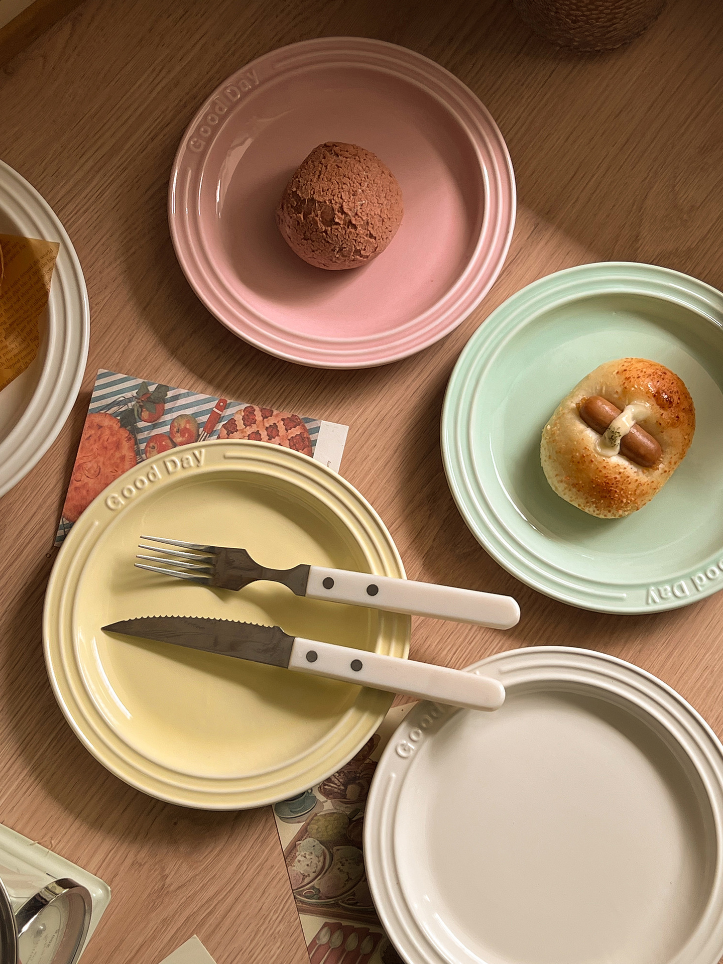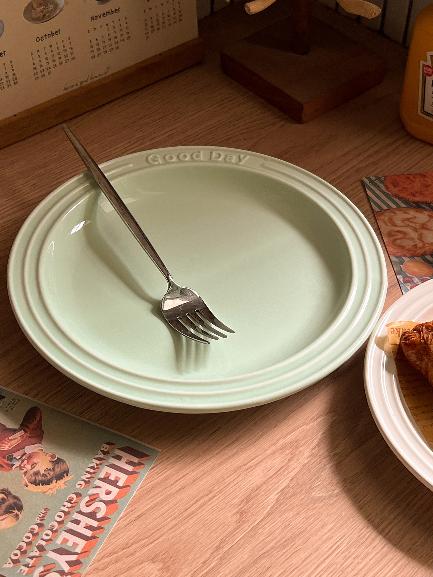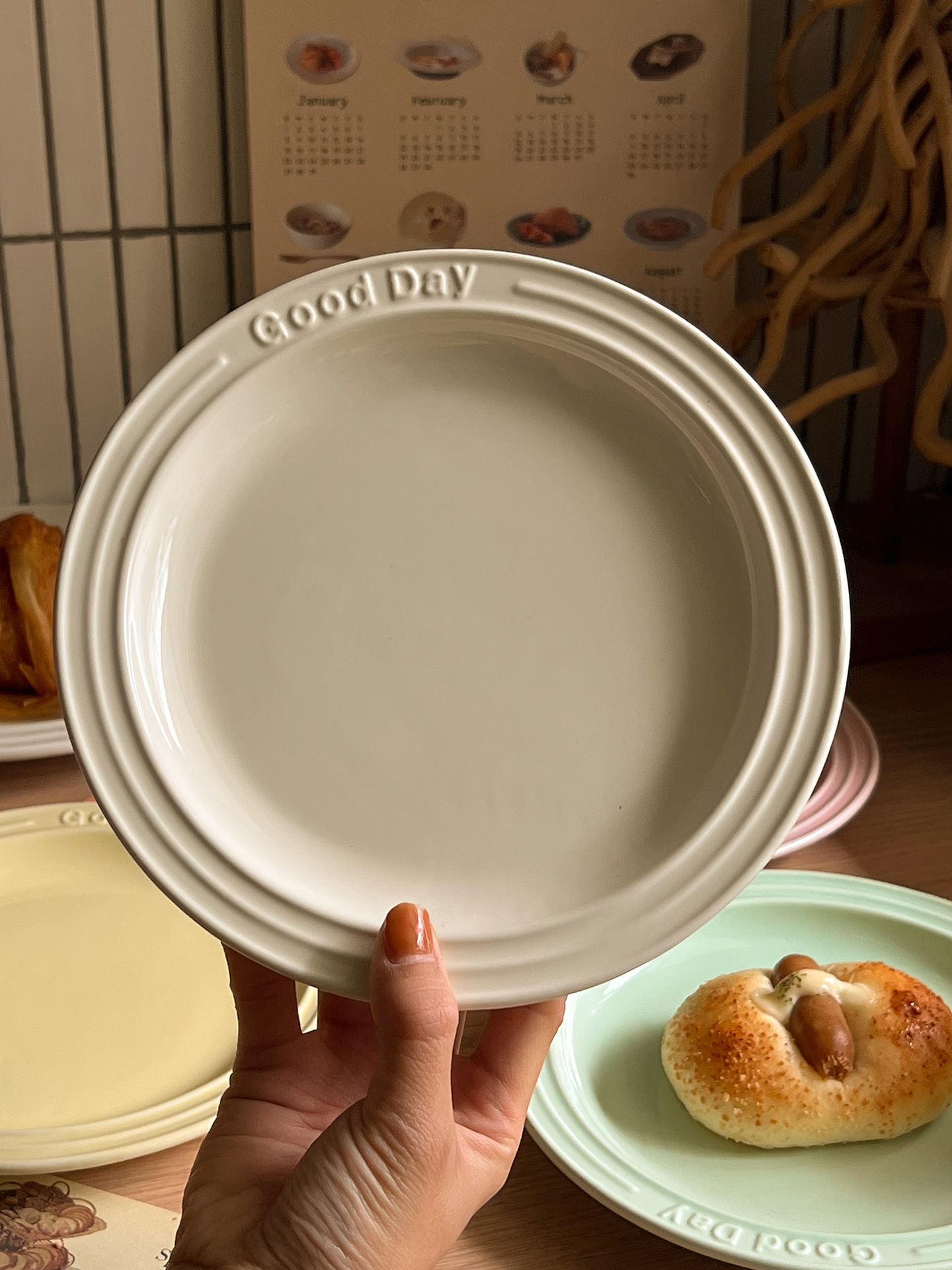 우유 Huhu Ins 바람 양각 문자 플레이트 크림 스타일 서양식 파가틴 스테이크 디저트 케이크 플레이트 텍스처 좋은 색상 값스토어 가기
