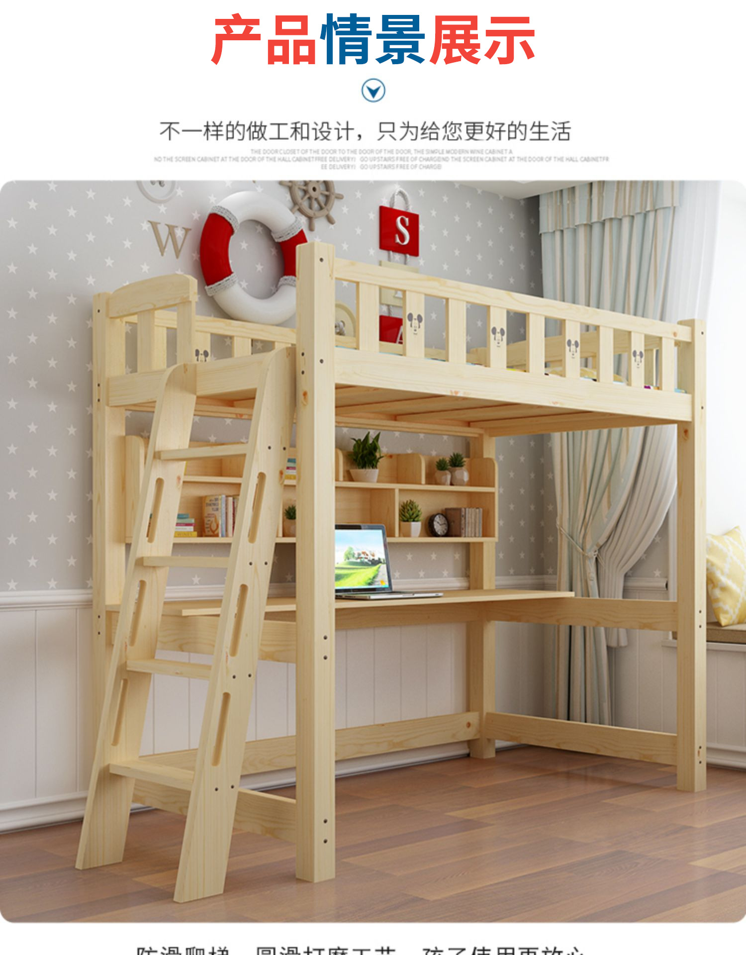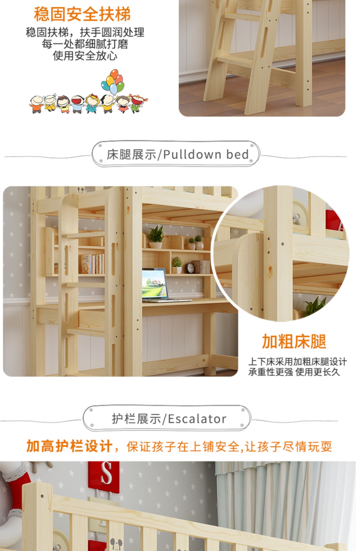 원목 이층침대, 책상이 있는 성인용 이층침대, 다기능 조합침대, 어린이용 이층침대 J&