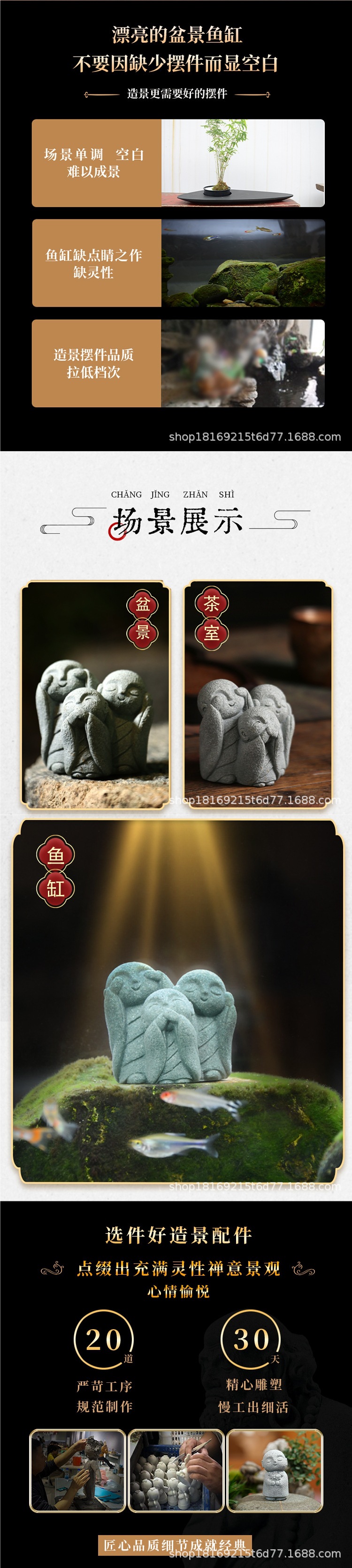 가짜 바위 수조 장식품, 수중 조경 장식품, 순환하는 물, 고대 방법, 귀여운 작은 불상, 약간 내구성
