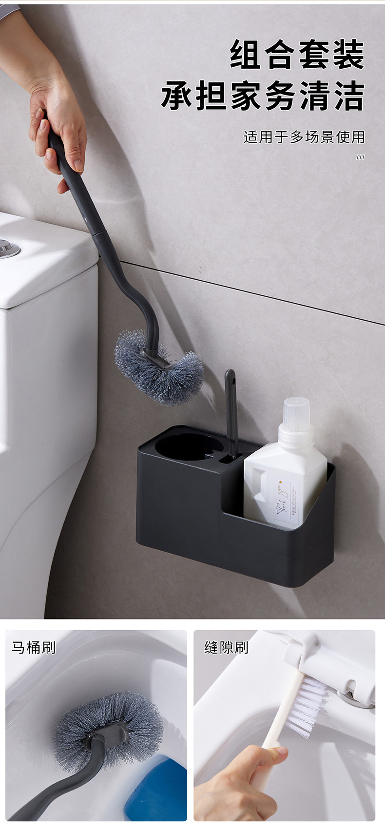 긴 손잡이 변기 브러시 벽걸이 세트 기숙사 화장실 브러시 유물 가정용 욕실 브러시 간격 브러시 조합스토어 가기