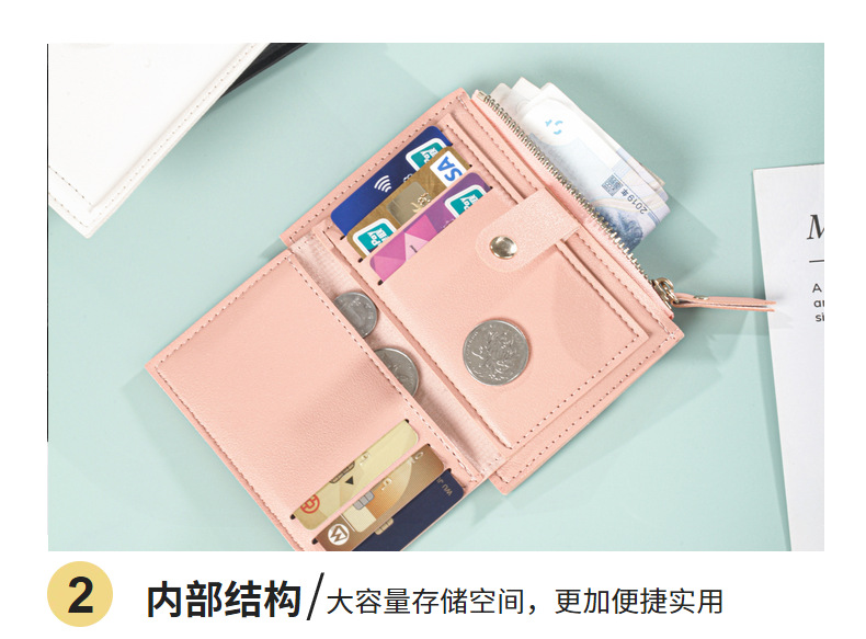 여성용 얇은 카드지갑 한국형 지퍼 카드지갑 캔디 컬러 버스카드 학생카드 은행카드 홀더 달러지갑