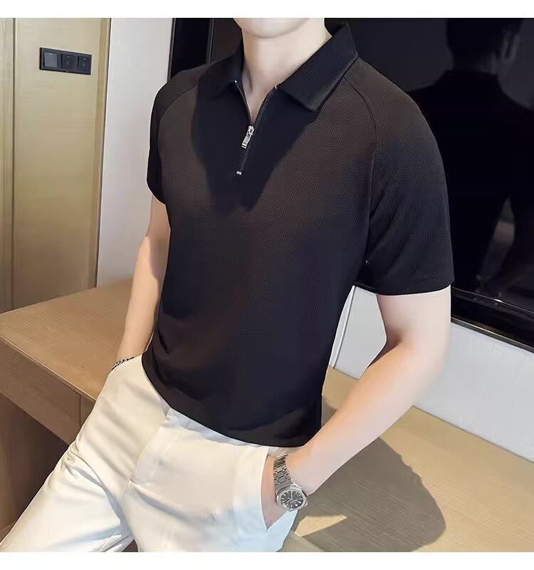 라펠 반팔 폴로 셔츠 남성 트렌디 여름 티셔츠 한국 스타일 슬림 트렌디 2025 새로운 다용도 티셔츠 탑