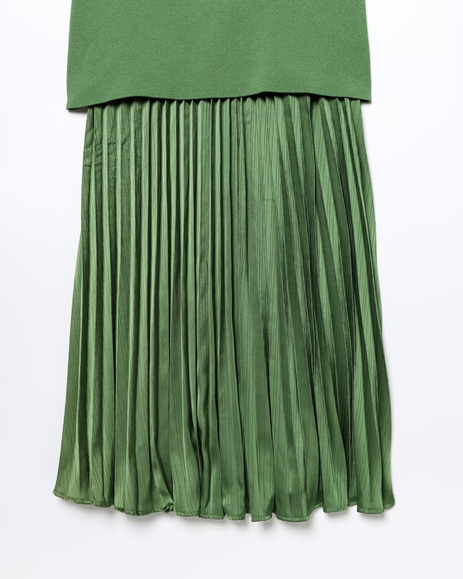2025 봄 새로운 유럽과 미국의 국경 여성 착용 기질 패션 니트 작은 주름 장식 원피스 w063 5030