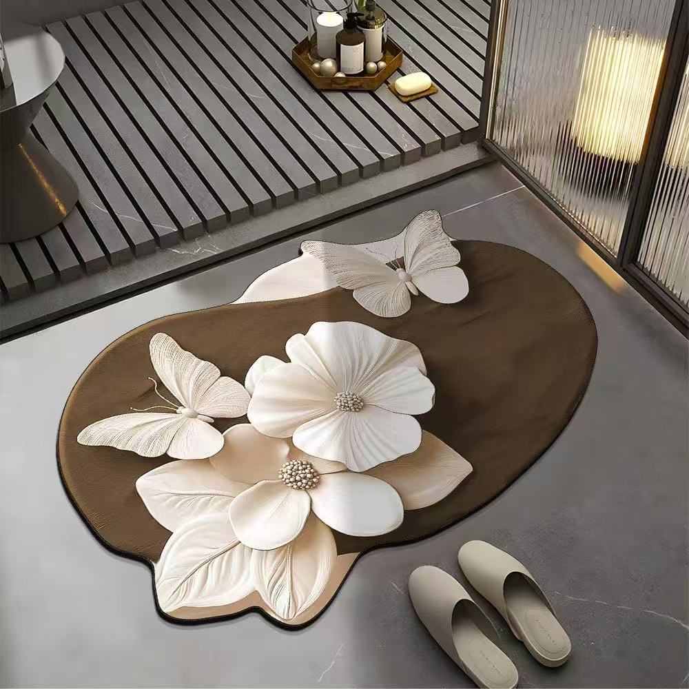 공장 직접 프렌치 나비 꽃 모양의 규조토 진흙 바닥 매트 욕실 화장실 흡수성 속건성 발 매트스토어 가기