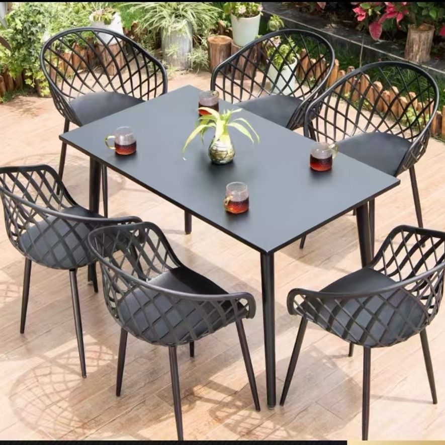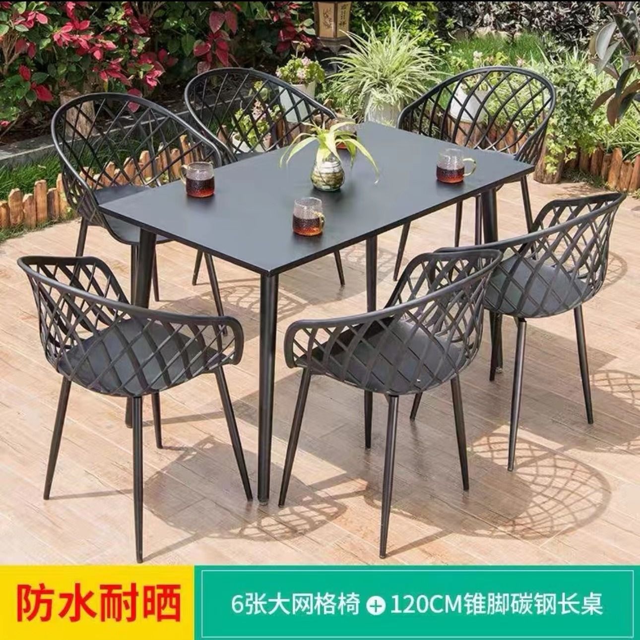 • [등받이 의자] 의자 6개 + 120x70CM 탄소강 사각 테이블
