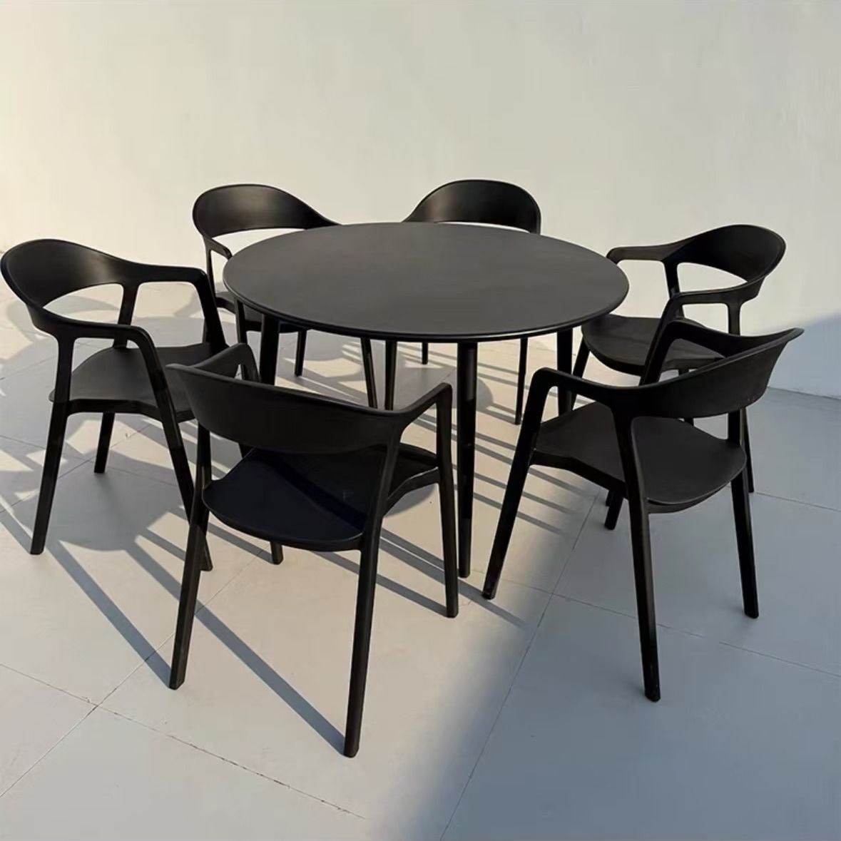 • [등받이 의자] 의자 6개 + 115cm 탄소강 대형 원형 테이블