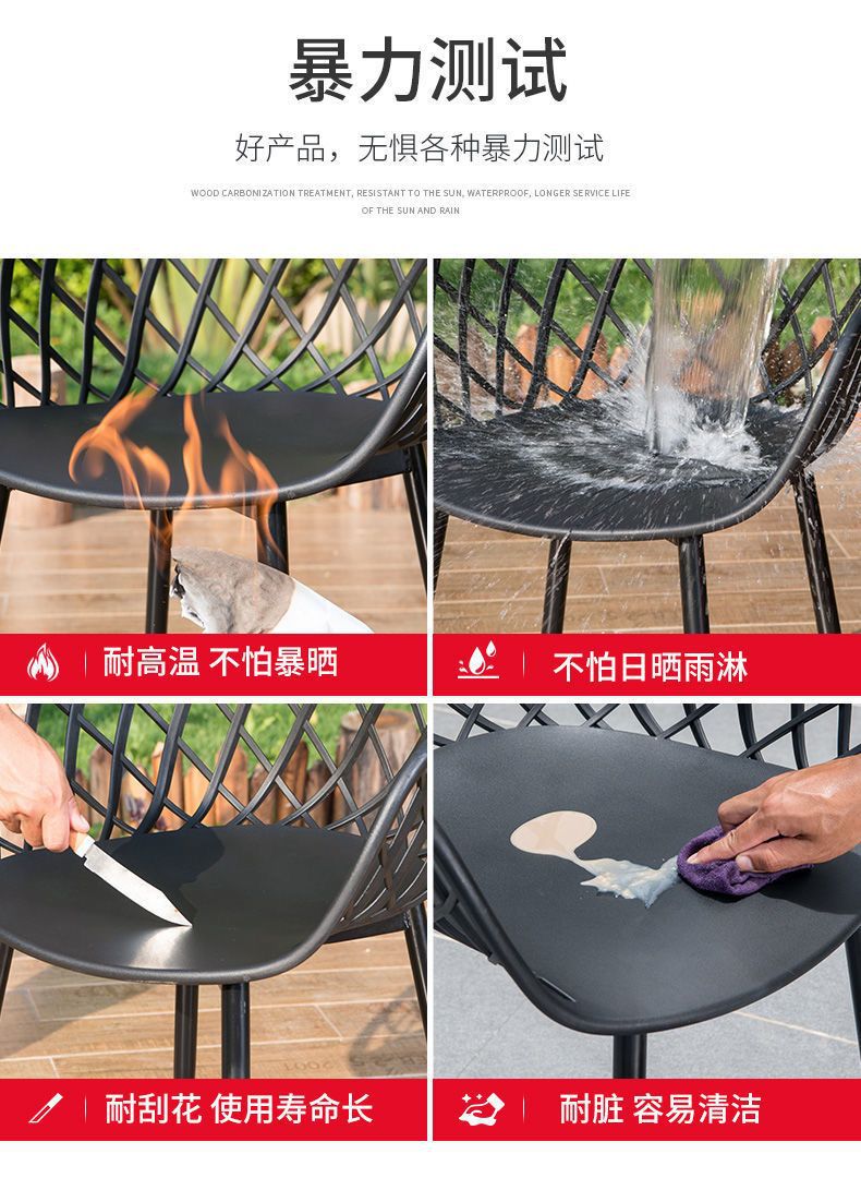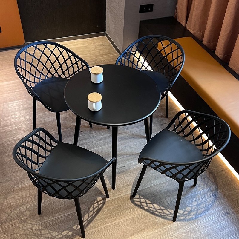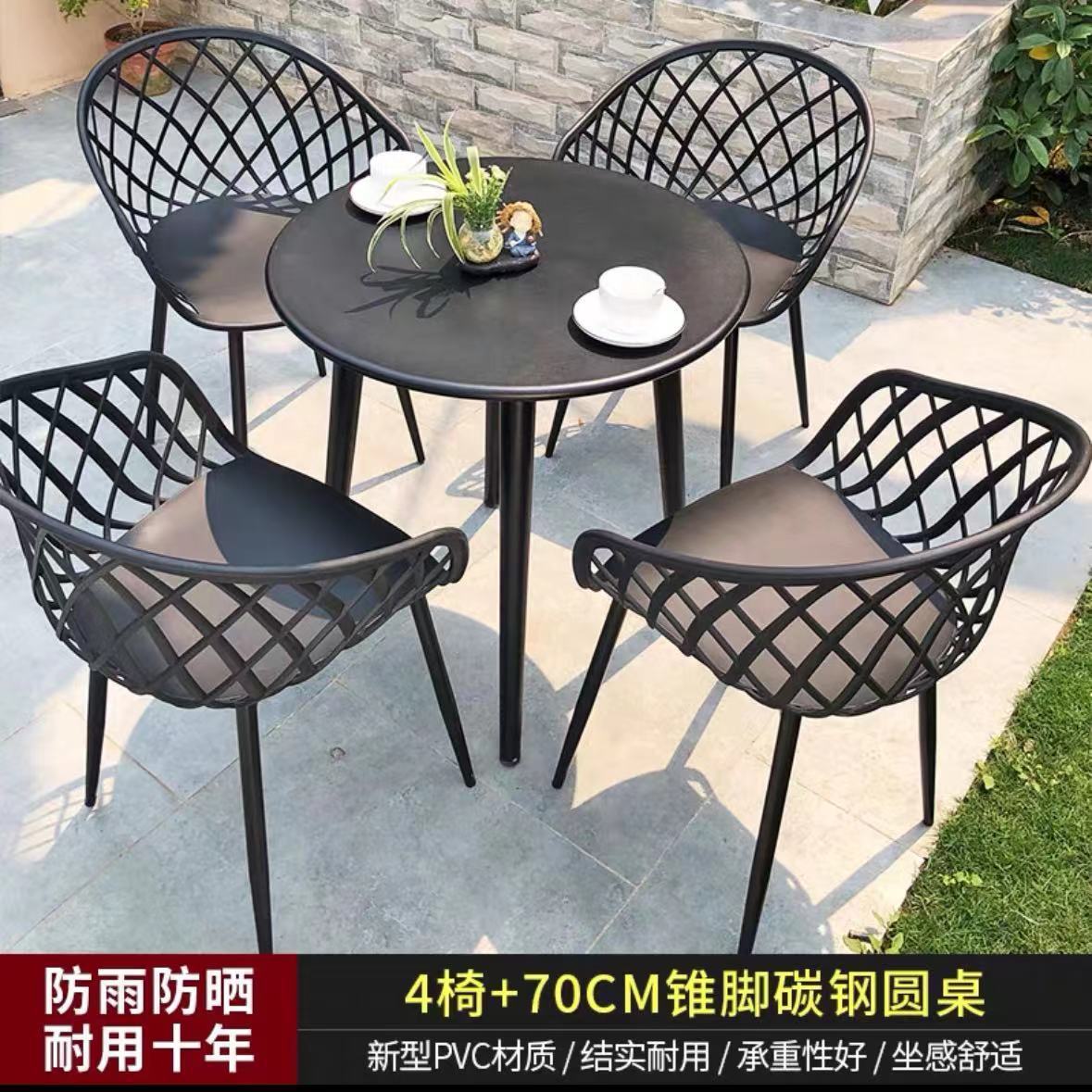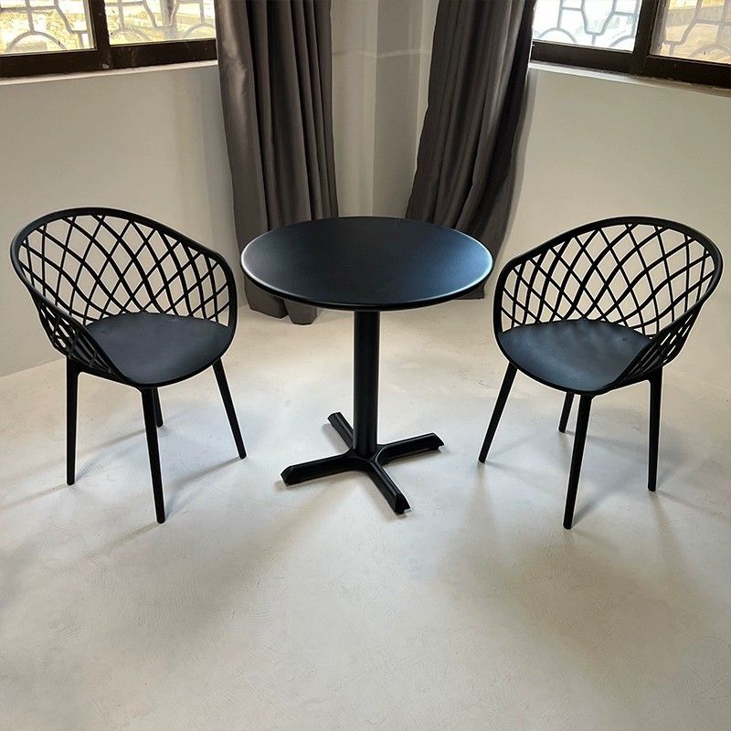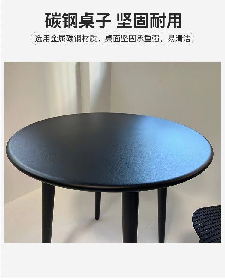 간단한 탄소강 작은 원형 테이블과 의자 조합 발코니 레저 협상 테이블 휴식 공간 야외 밀크티 숍 야외 식탁