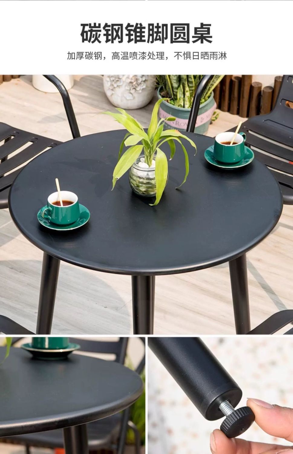 • 의자 4개 + 80cm 원뿔형 탄소강 원형 테이블