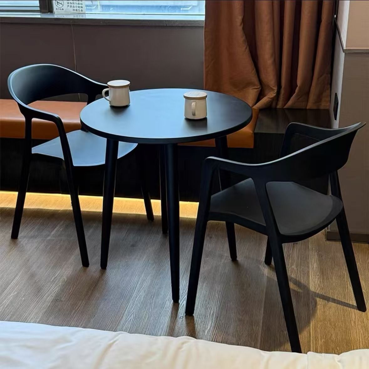 • 의자 2개 + 60cm 테이퍼드 다리 탄소강 원형 테이블