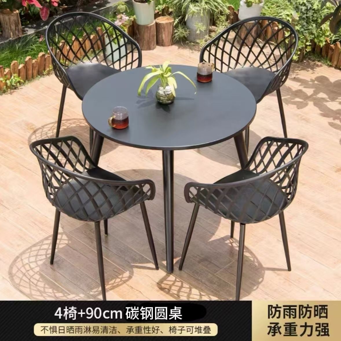 • [등받이 의자] 의자 4개 + 100CM 탄소강 원형 테이블
