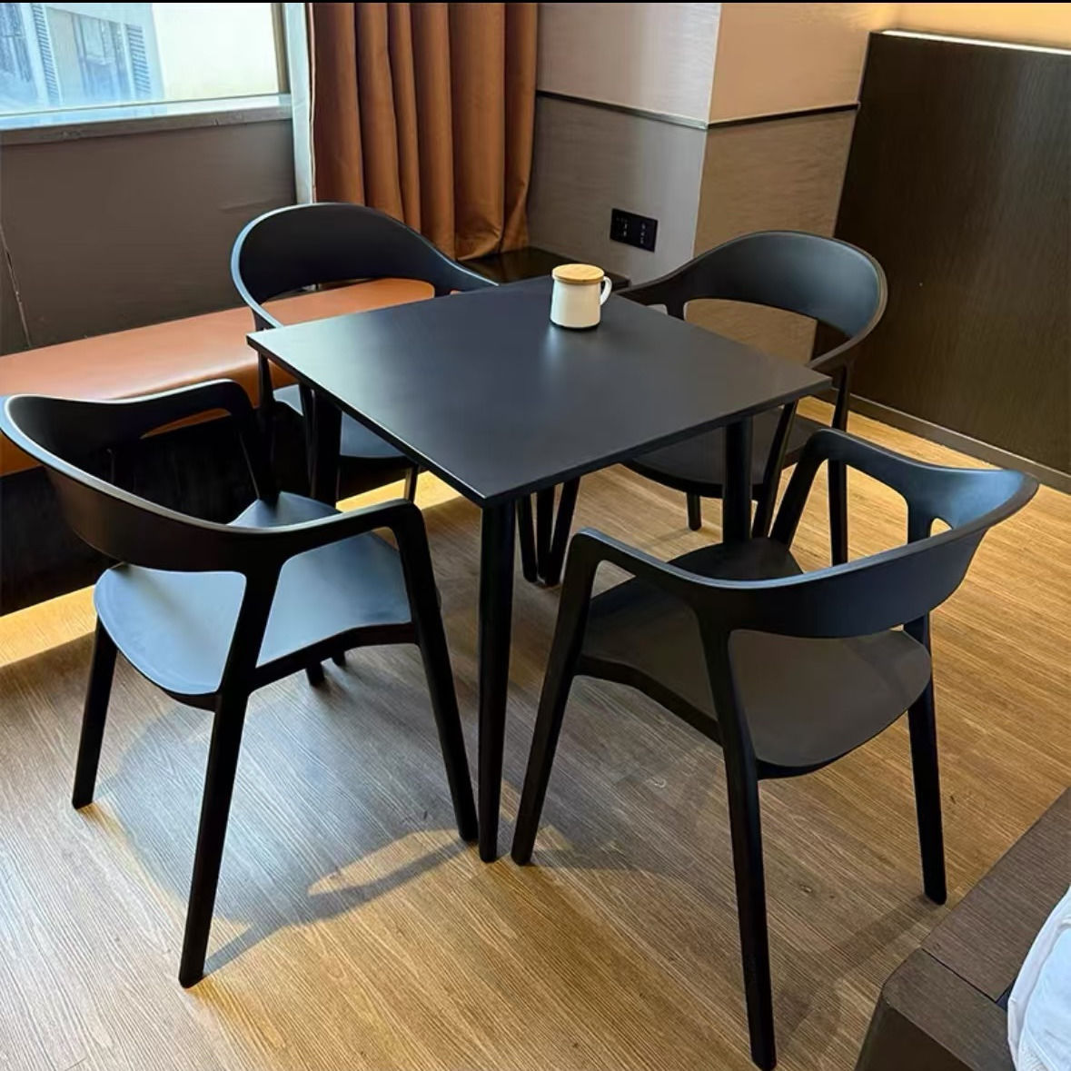 • 의자 4개 + 80x80 원추형 다리 탄소강 정사각형 테이블