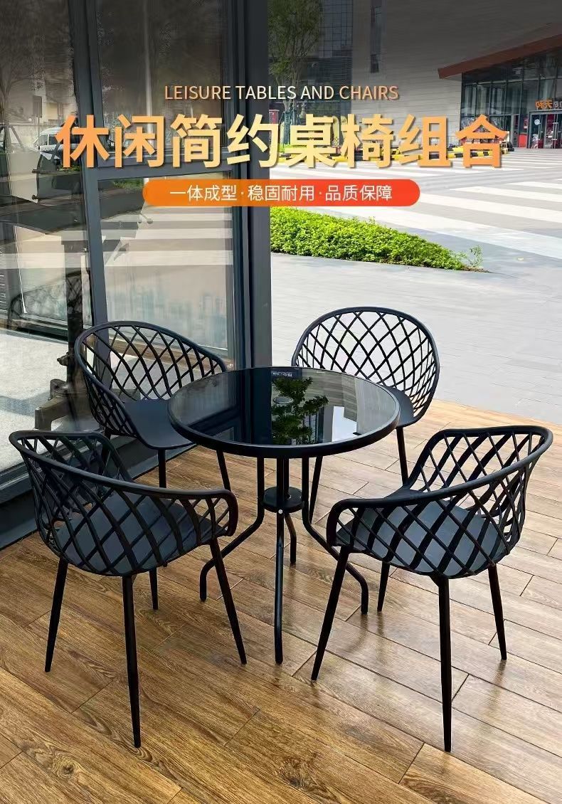 간단한 탄소강 작은 원형 테이블과 의자 조합 발코니 레저 협상 테이블 휴식 공간 야외 밀크티 숍 야외 식탁스토어 가기