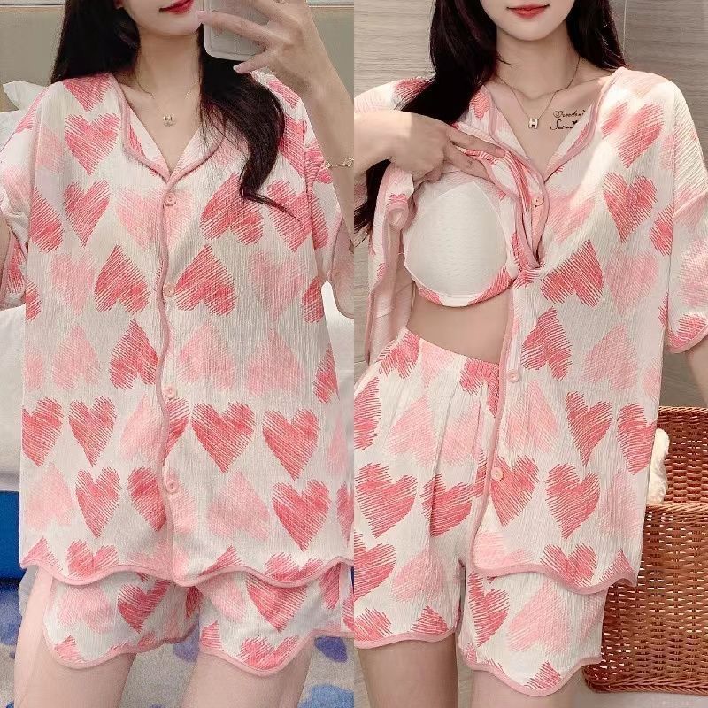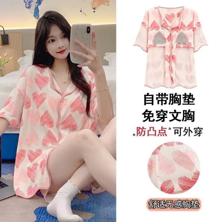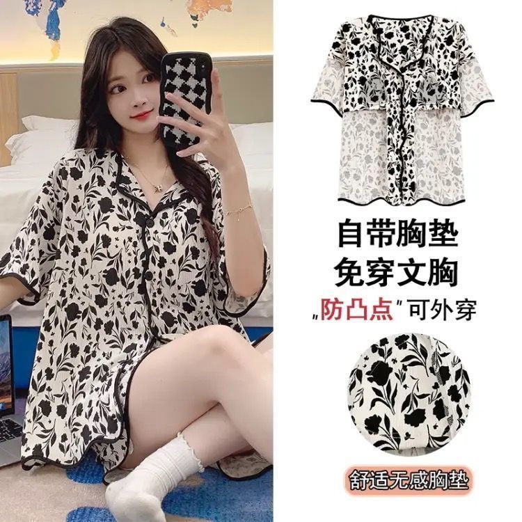 잠옷 여성 여름 십대 자급 벌거 벗은 가슴 패드 달콤한 기질 캐주얼 패션 인쇄 패턴 홈 의류스토어 가기