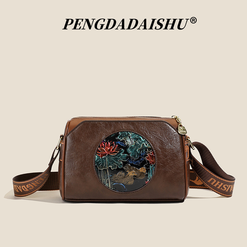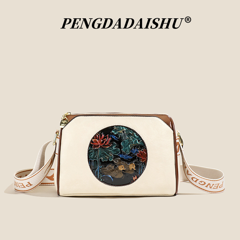 2025 새로운 여름 핸드백 패션 양각 어깨 크로스 바디 여성 가방 국경 간 문학 및 예술 국가 스타일 3 층 베개 가방