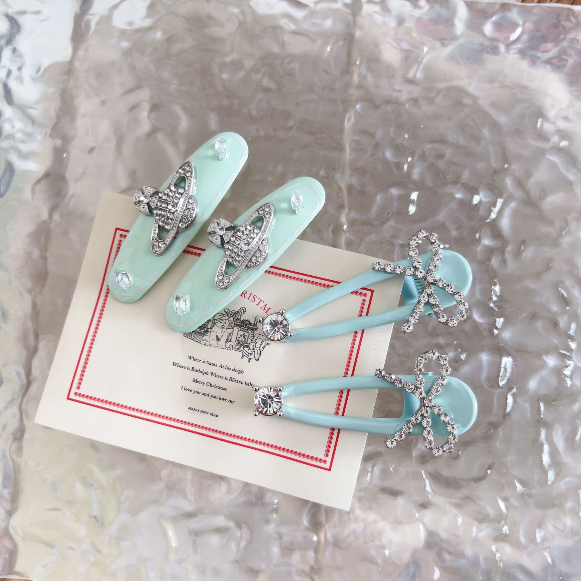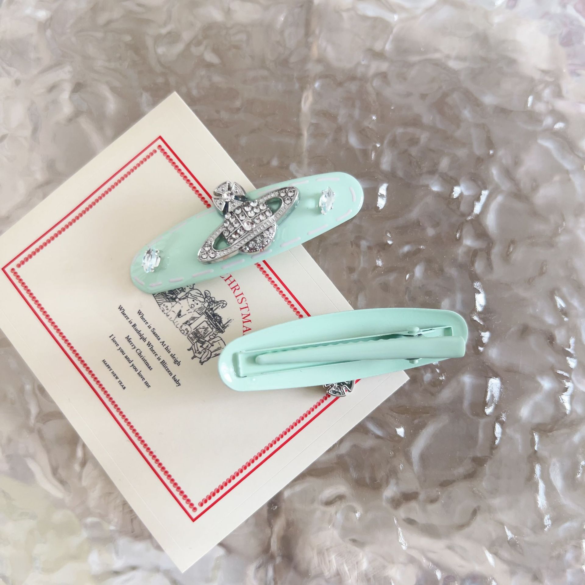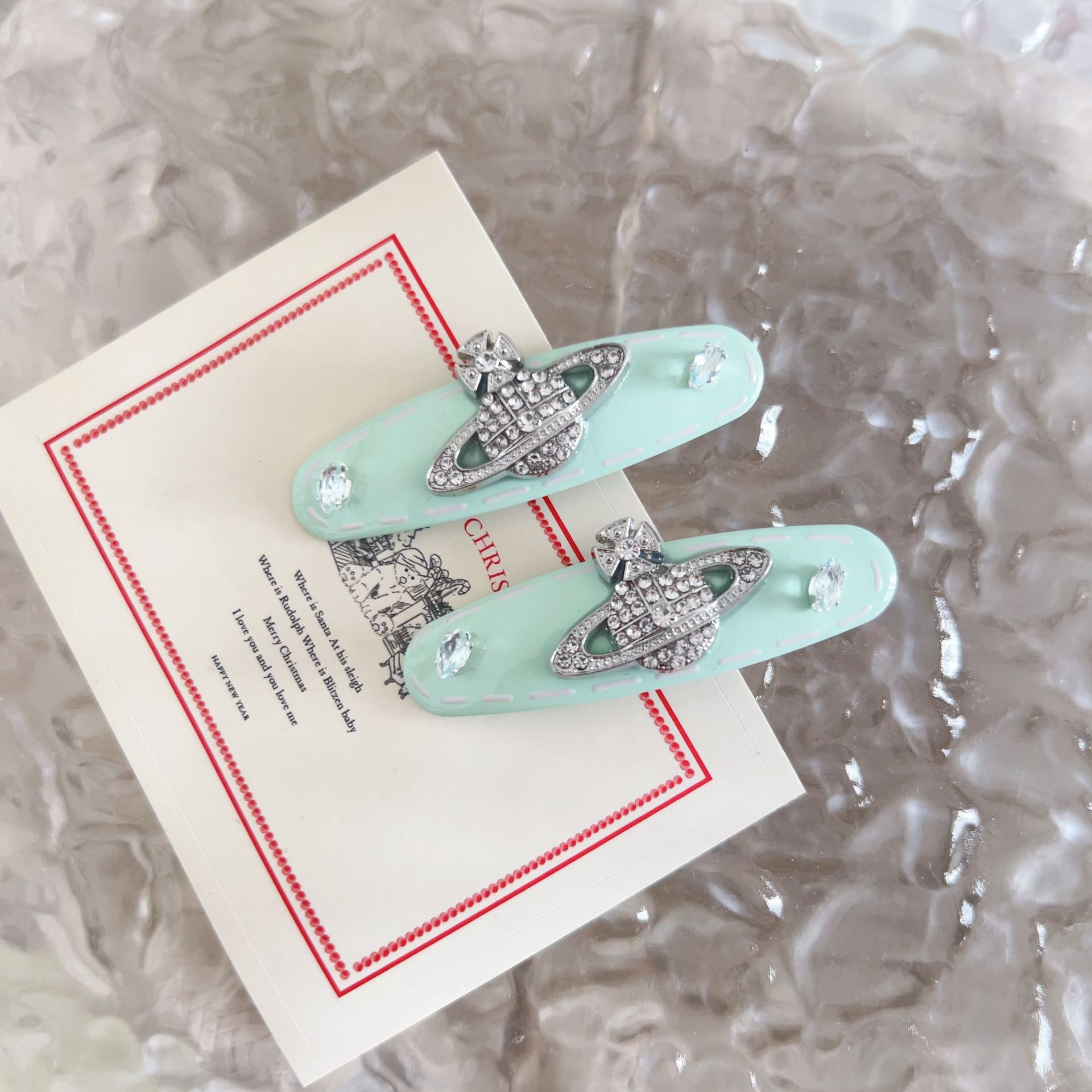 한국 스타일 새로운 여름 과일 그린 플래시 다이아몬드 토성 활 할로우 헤어핀 절묘한 올 매치 덕빌 클립 여성용 헤어핀
