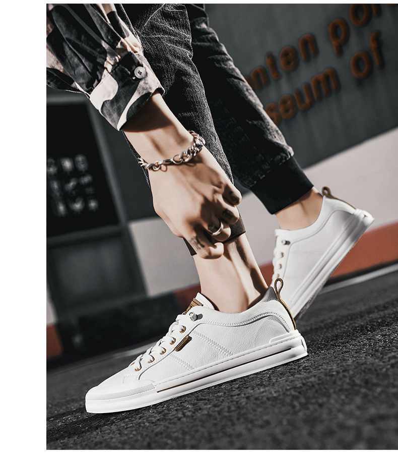 남성 신발 가을 통기성 신발 남성 플랫 신발 슬립 온 캐주얼 가죽 신발 스포츠 화이트 트렌디 신발스토어 가기
