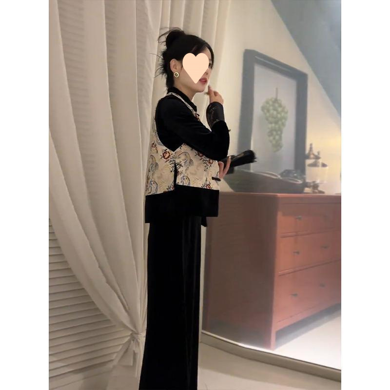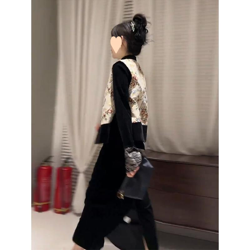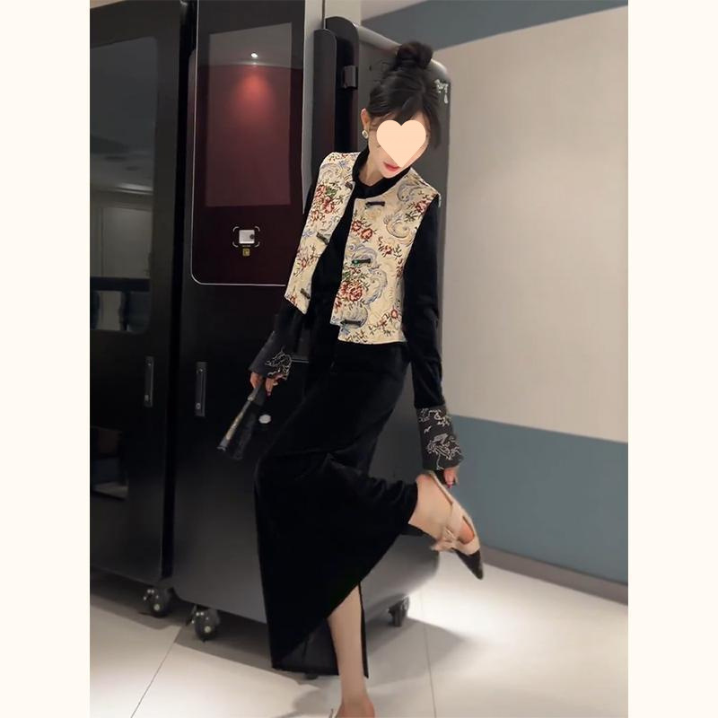 새로운 중국 스타일 여성을위한 중국 스타일 여성 의류 2025 새로운 스타일 올해 인기있는 아름다운 작은 향기로운 스타일 조끼 정장 벨벳 드레스 여성을위한