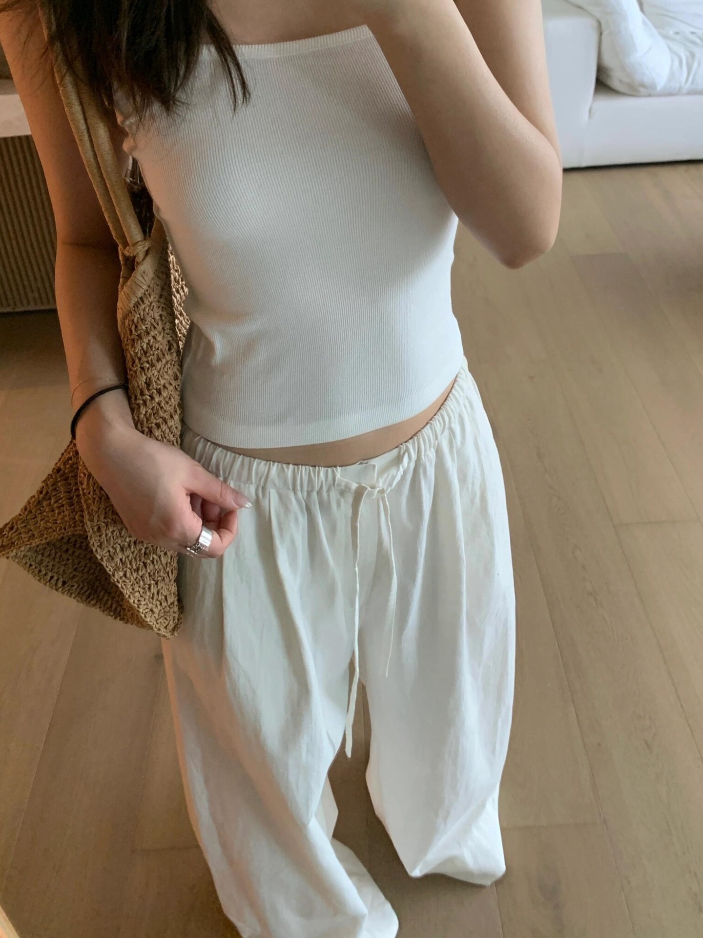 게으른 스타일 휴식 면과 린넨 넓은 다리 캐주얼 바지 여성의 2025 여름 얇은 긴 선 스크린 스트레이트 바지스토어 가기